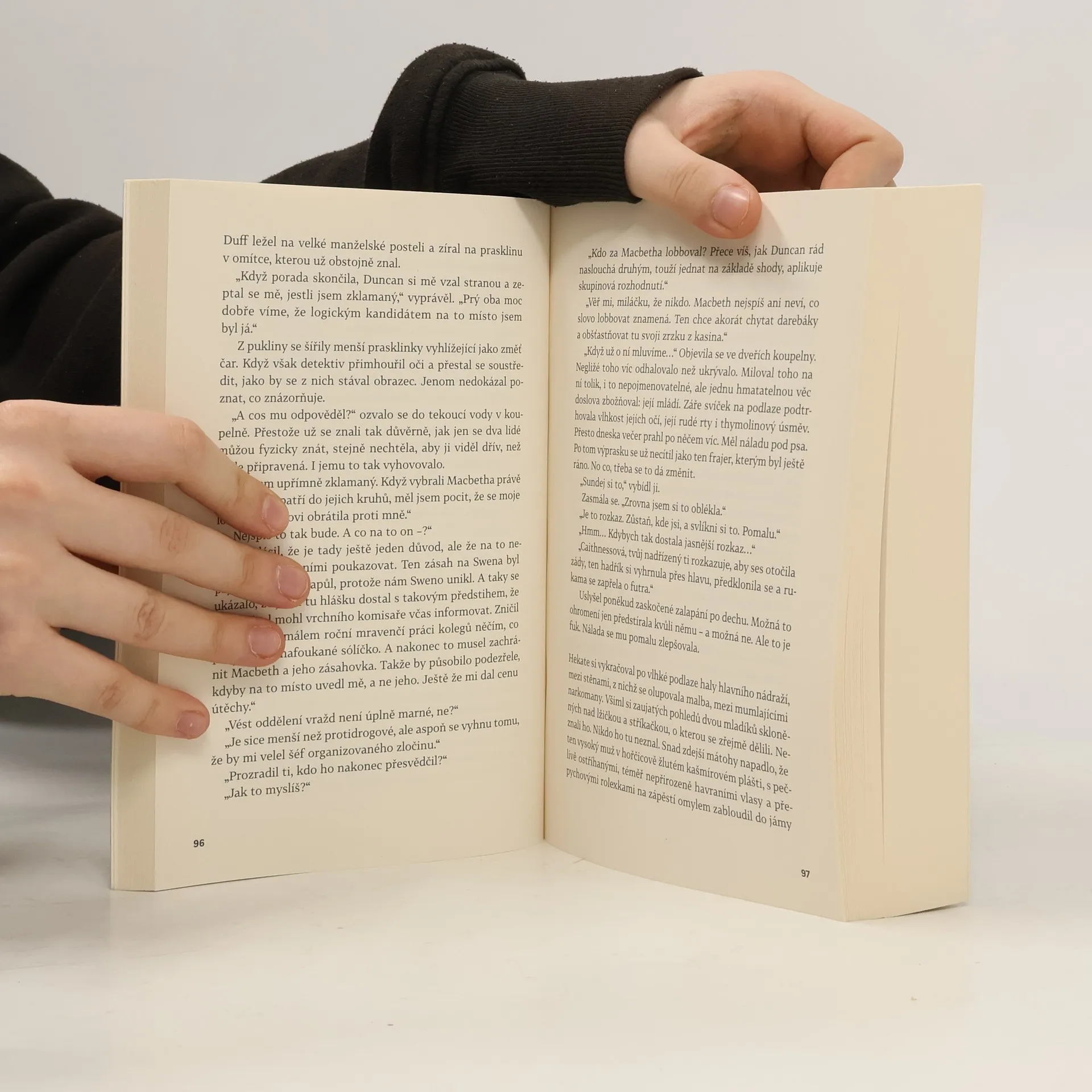 JE TO NEJLEPŠÍ POLDA, JAKÉHO KDY MĚLI Když se nepodařený zátah na dealery zvrhne v krveprolití, přichází inspektor Macbeth se svým týmem rychlého nasazení, aby zachránil situaci. MACBETH JE VŠAK I VYLÉČENÝ FEŤÁK S PROBLEMATICKOU, TRÝZNIVOU MINULOSTÍ. Za jeho úspěchy ho čeká odměna. Peníze. Moc. Respekt. To všechno má na dosah. JENŽE CHLAP S JEHO PŮVODEM NEMŮŽE DOSÁHNOUT AŽ NA VRCHOL Nebo může? Macbetha pronásledují halucinace a paranoidní představy o tom, jak mu osud brání v oprávněném vzestupu. Jak se má dostat k tomu, na co má právo? TAK, ŽE ZAČNE VRAŽDIT Z anglického překladu Dona Bartletta překládání do češtiny Jana Jašová.