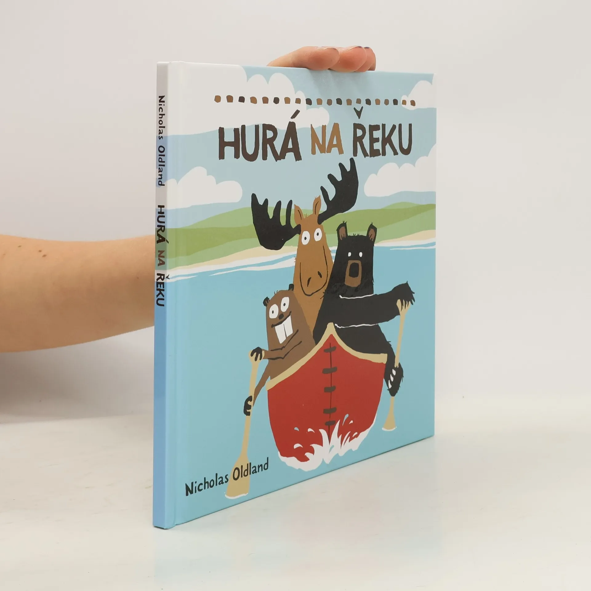 Hurá na řeku je moderní bajkou plnou humoru, zábavy a velkého dobrodružství. Hlavní hrdinové příběhu, medvěd, los a bobr, jsou nejlepší kamarádi, i když se občas na něčem neshodnou. Jednoho slunečného dne podniknou společný výlet na kánoi. Ze začátku se to zdá jako dobrý nápad, do doby než se naši hrdinové nemohou dohodnout, kdo kánoi bude kormidlovat a na které straně budou pádlovat. Když se nakonec dostanou do zpěněných peřejí a narazí na skály – hádají se ještě víc! Dokážou se domluvit alespoň na tom, jak se zachrání? V této veselé moderní bajce plné napínavého dobrodružství se seznámíte s roztomilými postavičkami a ponaučením, jak je důležité spojit své schopnosti a navzájem spolupracovat. Příběh je postaven na týmové práci a přátelství. Hurá na řeku je čtvrtou knihou ze série knih o medvědovi, losovi a bobrovi, kterou napsal a ilustrovat Nicholas Oldland. Jeho ilustrace jsou jednoduché, vtipné a originální. V mimice hlavních hrdinů zachycuje humor a reakce na prožívané situace. Humorný příběh doprovází i malý červený ptáček, který provází tři kamarády na cestách za dobrodružstvím!
