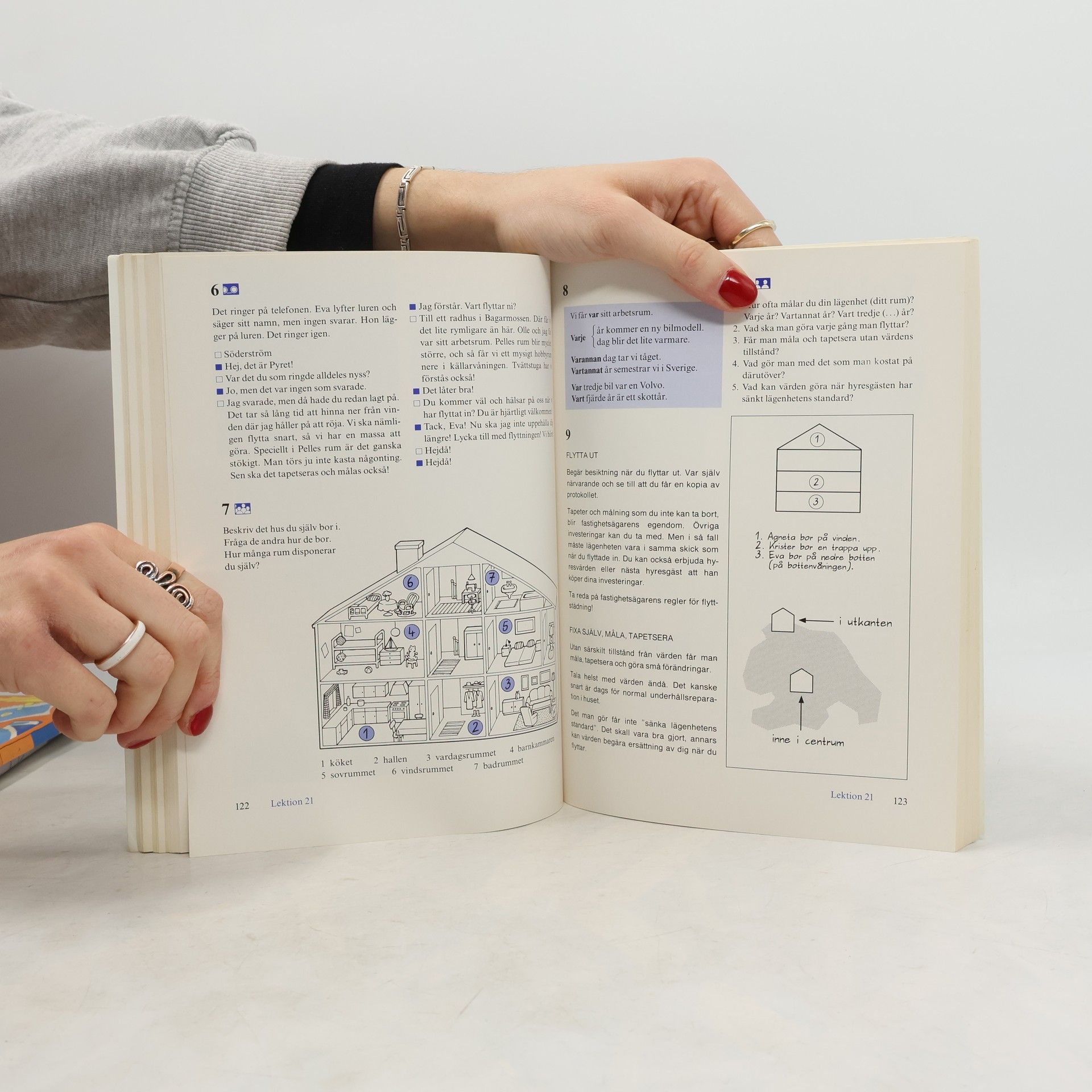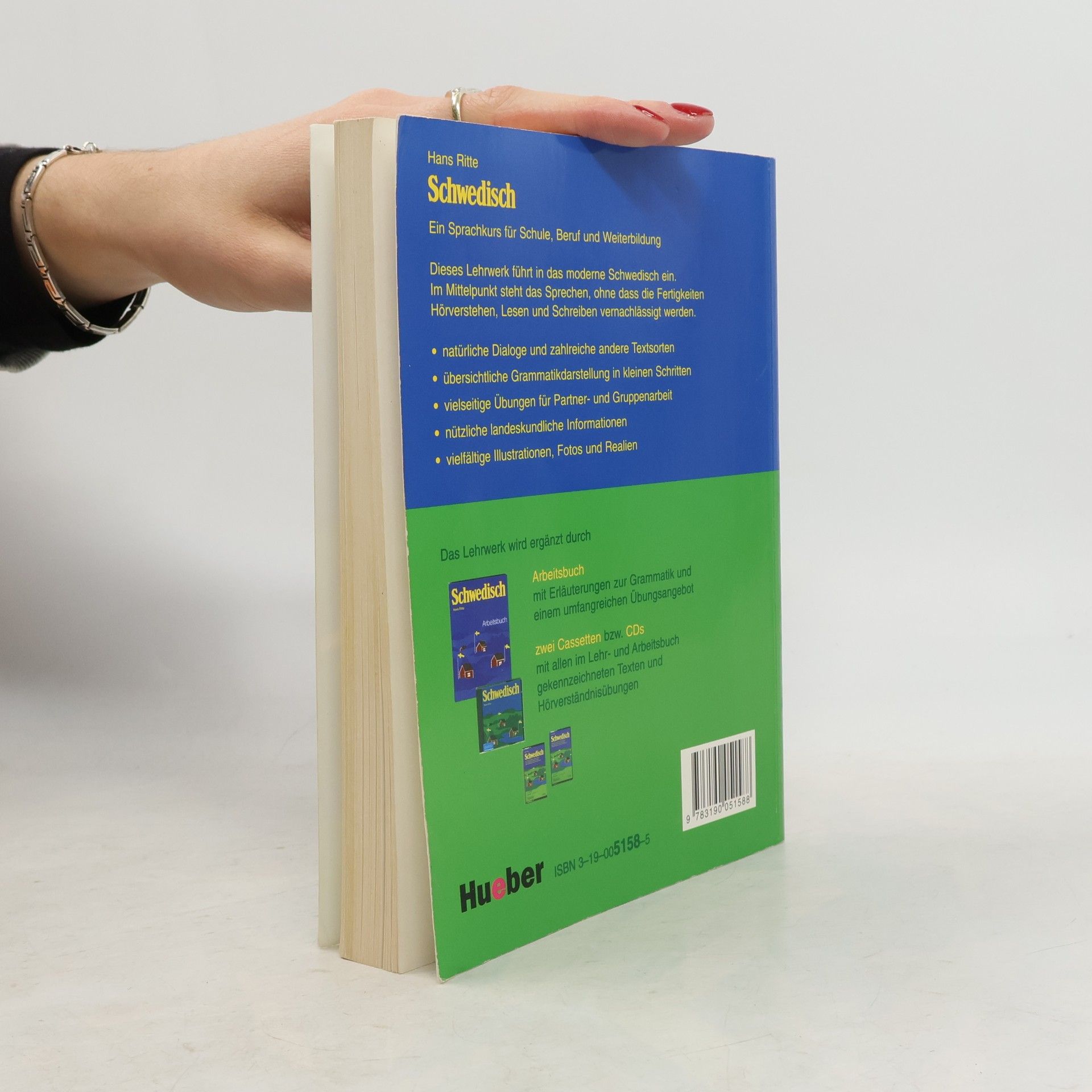 Zielgruppe: Lernende ohne Vorkenntnisse an Volkshochschulen und anderen Einrichtungen der Erwachsenenbildung. Lernziel: Entwicklung der vier Fertigkeiten Hören, Sprechen, Lesen und Schreiben; Erwerb von Grundkenntnissen für die sprachliche Bewältigung alltäglicher Situationen. Konzeption: In den 30 einsprachigen Lektionen werden Themen aus den wichtigsten Lebensbereichen behandelt. Dialoge und landeskundlich informative Originaltexte liefern das Sprachmaterial. Grammatische Phänomene werden im Lehrbuch tabellarisch dargestellt. Der Wortschatz ist im schwedisch-deutschen Lektionsvokabular zusammengefasst.