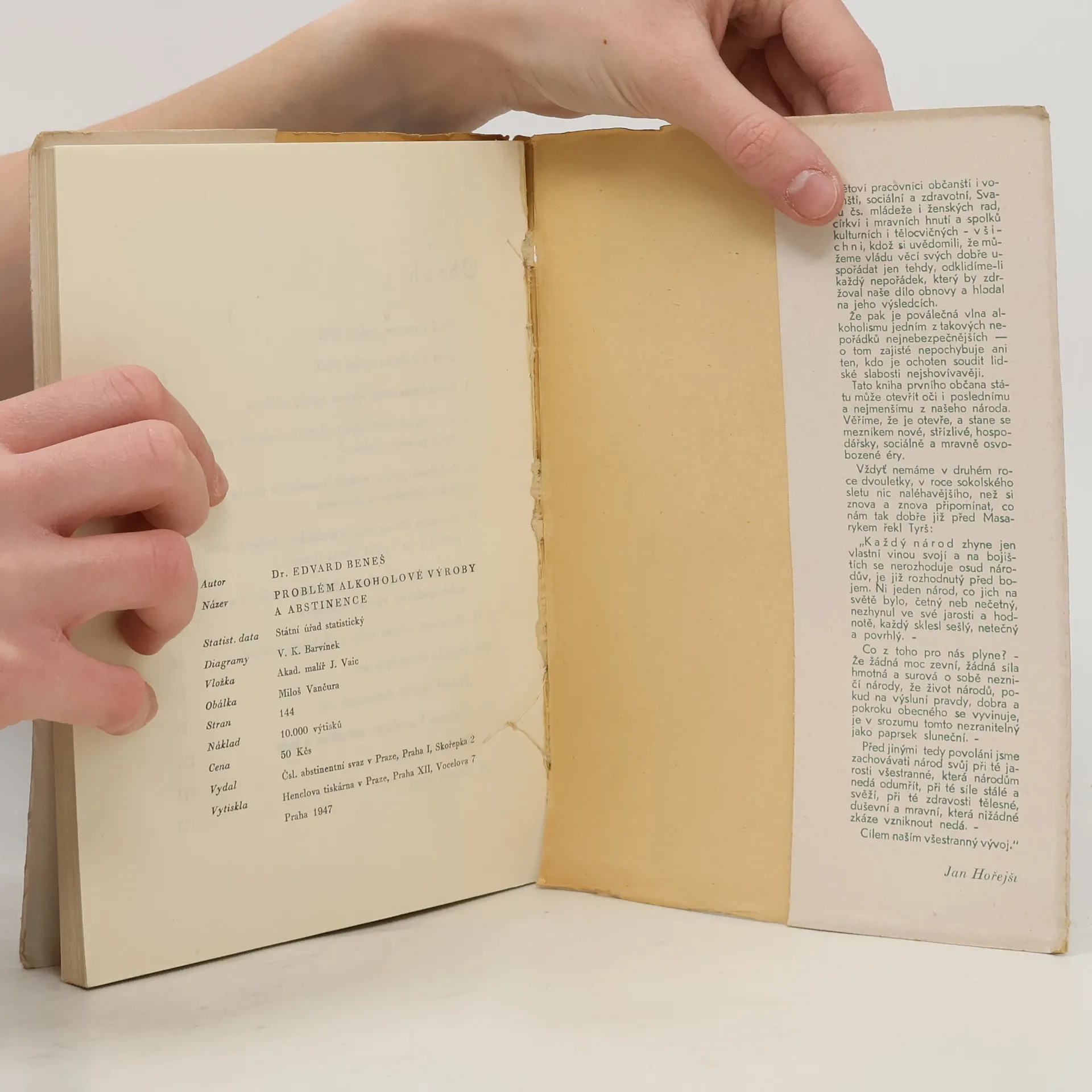 Problém alkoholové výroby a abstinence, Edvard Beneš