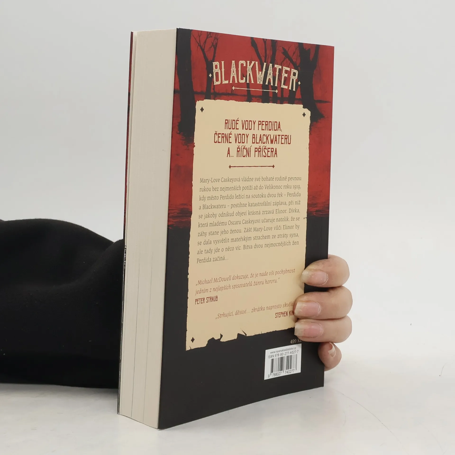 McDowellův velkolepý, mnohovrstevnatý hororový román Blackwater sleduje více než padesát let života mocného alabamského klanu Caskeyových pod vlivem krásné a záhadné – a také ne zcela lidské – Elinor Dammertové. Elinor do rodiny Caskeyových vstoupí během ničivé povodně roku 1919 a navždy změní osudy nejen jejích členů, ale i celého města Perdida, v němž se usadí a postupně v něm získává čím dál větší moc. Jaké jsou motivy jejích činů a jak silné je její pouto se dvěma řekami protékajícími městem, to však netuší nikdo kromě jejího manžela Oscara – a ten má dost rozumu na to, aby věděl, že na některé věci je lepší se neptat…