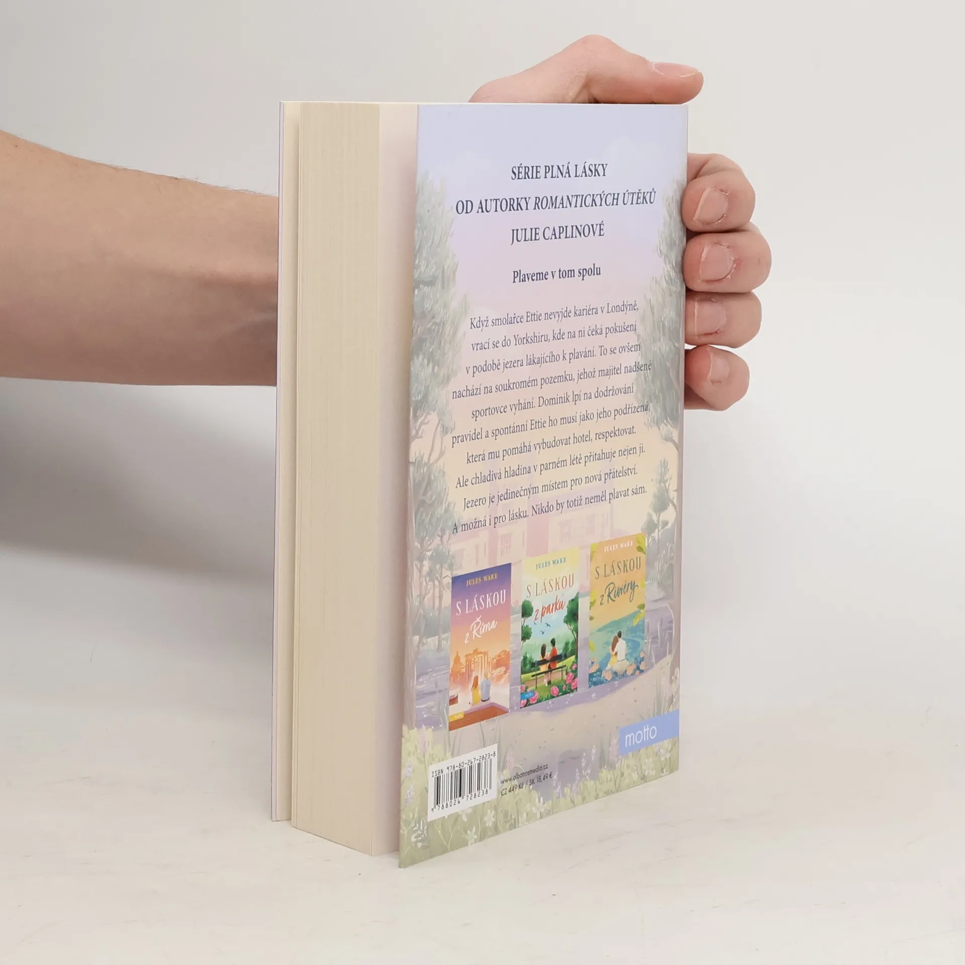 Román o lásce nejen k plavání od autorky známé jako Julie Caplinová Jules Wake, známá také jako Julie Caplinová, tentokrát vypráví o lásce, která nedbá varování, a především o plavání a jeho blahodárných účincích na tělo i mysl. Když smolařce Ettie nevyjde kariéra v Londýně, vrací se do Yorkshiru, kde na ni čeká pokušení v podobě jezera ve zdánlivě opuštěném zámeckém parku. To se ovšem nachází na soukromém pozemku, jehož majitel nadšené sportovce vyhání. Dominik lpí na dodržování pravidel a spontánní Ettie ho musí jako jeho podřízená, která mu pomáhá vybudovat hotel, respektovat. Ale chladivá hladina v parném létě přitahuje nejen ji. Jezero je jedinečným místem pro nová přátelství. A možná i pro lásku. Nikdo by totiž neměl plavat sám.