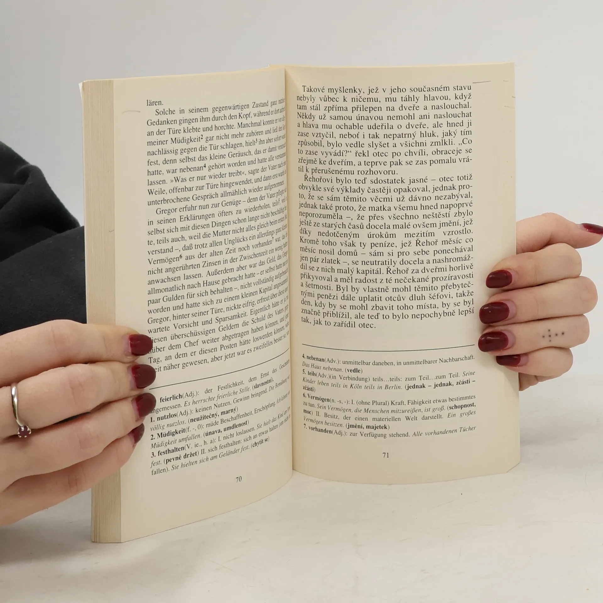 Dvojjazyčné vydání jedné z nejznámějších próz Franze Kafky s prvními ilustracemi jeho díla ve světovém měřítku. Pro moravského nakladatele Josefa Floriana je v r. 1924 pořídil německý malíř Wilhelm Wessel. Jedinečnost edice spočívá v tom, že za Kafkova života žádné ilustrace k jeho knihám nevyšly, neboť Kafka se bránil přímému ilustrování svých děl.Součástí knihy je dále rozsáhlá studie pořadatele o literátech a výtvarných umělcích německého expresionismu u Florianů se zvláštním zřetelem k autorovi ilustrací. Text doprovázejí reprodukce dalších výtvarných dokumentů vzniklých za malířova pobytu ve Staré Říši a životopisný portrét z pera znalkyně jeho díla Marieluise Spangenbergové. Grafická podoba knihy z dílny Otakara Karlase činí z knihy také výtvarný artefakt.