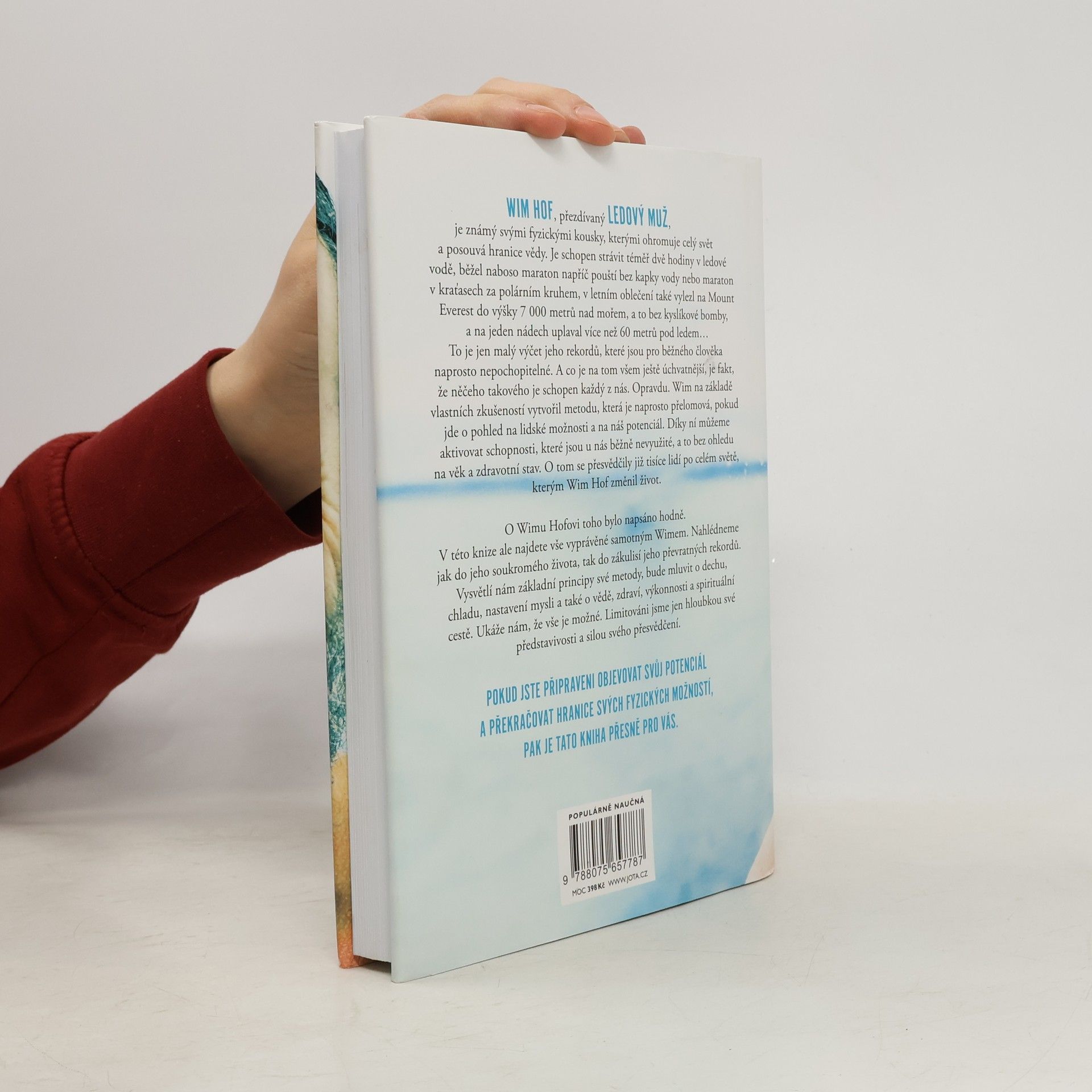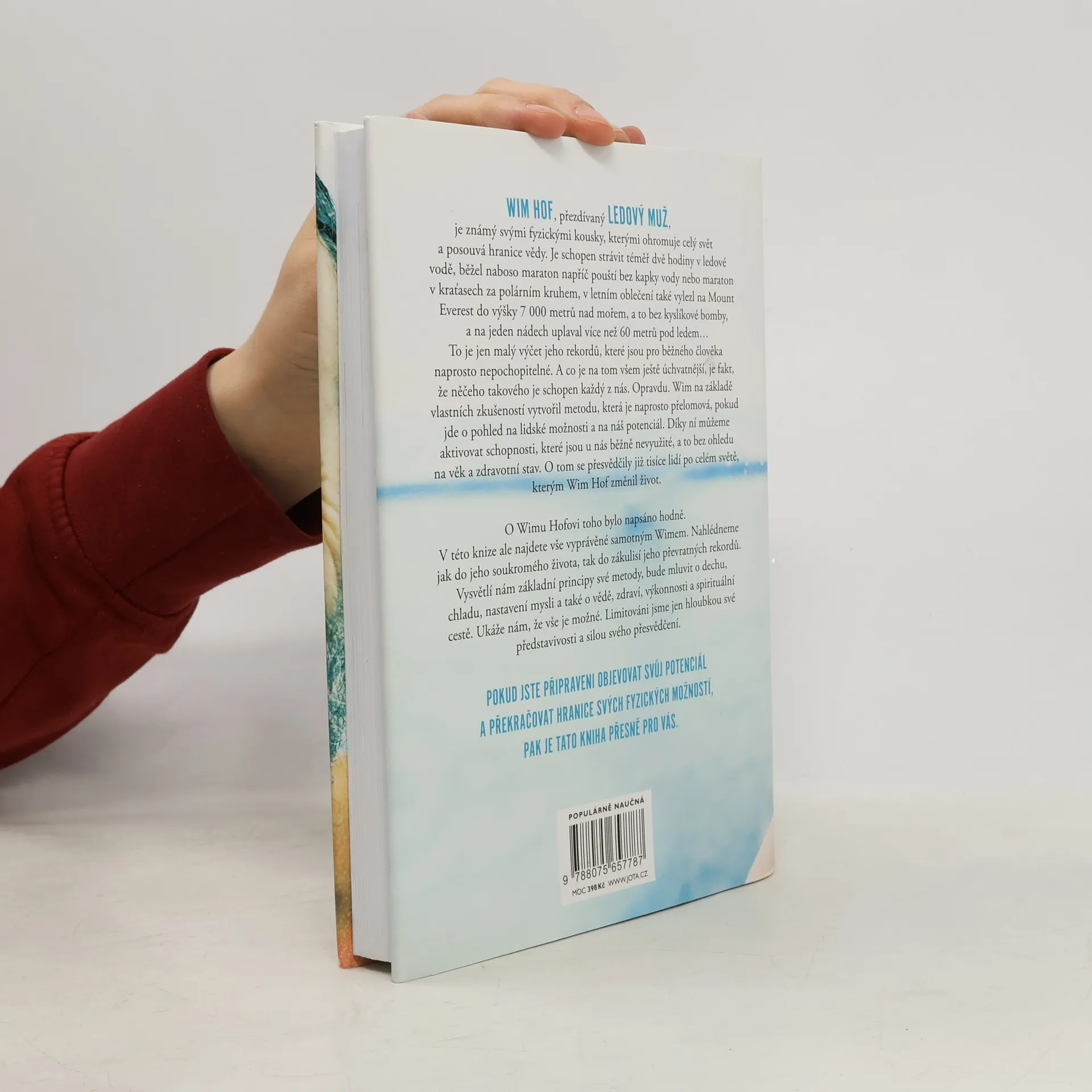 Jediná autorizovaná kniha Wima Hofa představuje převratnou metodu, která nám umožňuje využít náš fyzický i duševní potenciál. Wim Hof, známý jako Ledový muž, ohromuje svět svými neuvěřitelnými výkony, jako je strávení téměř dvou hodin v ledové vodě, běhání maratonů bez vody a výstupy na Mount Everest bez kyslíku. Tyto rekordy mohou vypadat nepochopitelně, ale Hof tvrdí, že podobných schopností může dosáhnout každý z nás. Na základě svých zkušeností vytvořil metodu, která mění pohled na lidské možnosti a aktivuje nevyužité schopnosti, bez ohledu na věk či zdravotní stav. Tisíce lidí po celém světě již pocítily pozitivní změny ve svém životě díky této metodě. Kniha nabízí osobní pohled na Hofův život a zákulisí jeho rekordů. Vysvětluje základní principy jeho metody, včetně technik dýchání, práce s chladem, nastavení mysli a souvislostí se zdravím a spirituálním rozvojem. Hof ukazuje, že naše limity jsou určeny pouze hloubkou naší představivosti a silou přesvědčení. Pokud jste připraveni objevovat svůj potenciál a překonávat fyzické hranice, tato kniha je pro vás. „Tato metoda je jednoduchá, přístupná a vědecky podložená. Může ji praktikovat kdokoli, bez dogmat, pouze s přijetím a svobodou.“