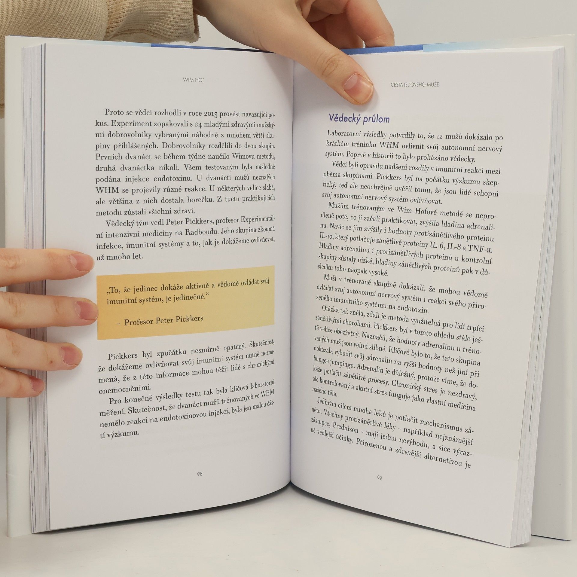 Současná věda již prokázala, že legendární metoda Wima Hofa založená na práci s dechem, myslí a chladem může opravdu výrazně napomoci k celkovému fyzickému i psychickému zdraví. Dodá nám tolik potřebnou energii, zlepší krevní oběh a odolnost proti stresu, podpoří imunitní systém, posílí celkovou tělesnou kondici a díky ní se naše tělo dokáže snáze vypořádat s nemocemi. Wim svou metodu vyvíjel několik desítek let a vše má odzkoušené přímo na sobě. Uběhl půlmaraton v -30 °C jenom v šortkách, uplaval stovky metrů pod ledem, vydržel 90 minut v ledu, aniž by se změnila vnitřní teplota jeho těla, a zrychlil svůj metabolismus o více než 300 procent. Tato kniha dokumentuje, jak kdokoli, kdo si osvojí Wimovu metodu, může rychle a bezpečně zlepšit své zdraví a sílu. Praktická kniha s konkrétními návody pro všechny, kteří chtějí praktikovat metodu Wima Hofa. Včetně 30denní výzvy pro ty, kteří s metodou teprve začínají.