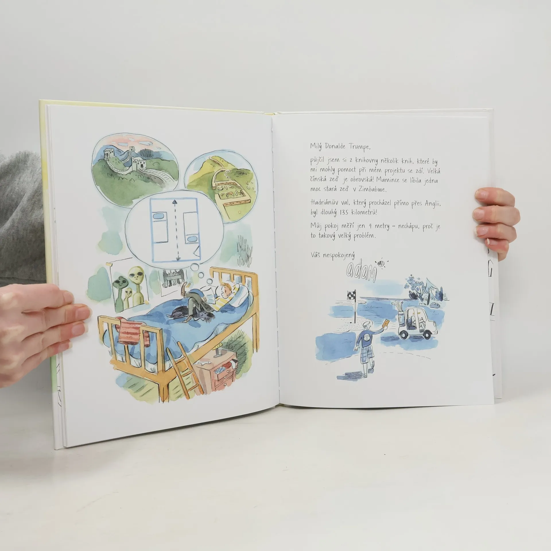 Adam má problém. Musí se dělit o svůj pokoj se starším bratrem a to není nic jednoduchého. Když Adam vidí, jak Donald Trump mluví v televizi o "můře", napadne ho, že to by mohlo být řešením i jeho problémů! Věci ale nejsou tak jednoduché, jak se na první pohled mohou zdát. Okouzlující příběh je vyprávěný formou dopisů, které malý chlapec Adam adresuje prezidentovi Spojených států Donaldu Trumpovi. Od zdánlivě banálního sourozeneckého "problému" se dostane k vážnějším tématům a lidským citům - laskavosti, soucitu, míru a porozumění. Kniha je zároveň plná humoru a je vhodná nejen pro děti, ale upoutá čtenáře všech věkových kategorií.