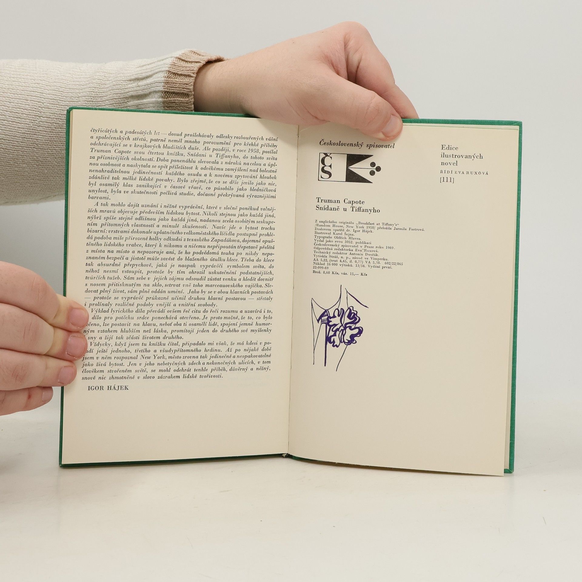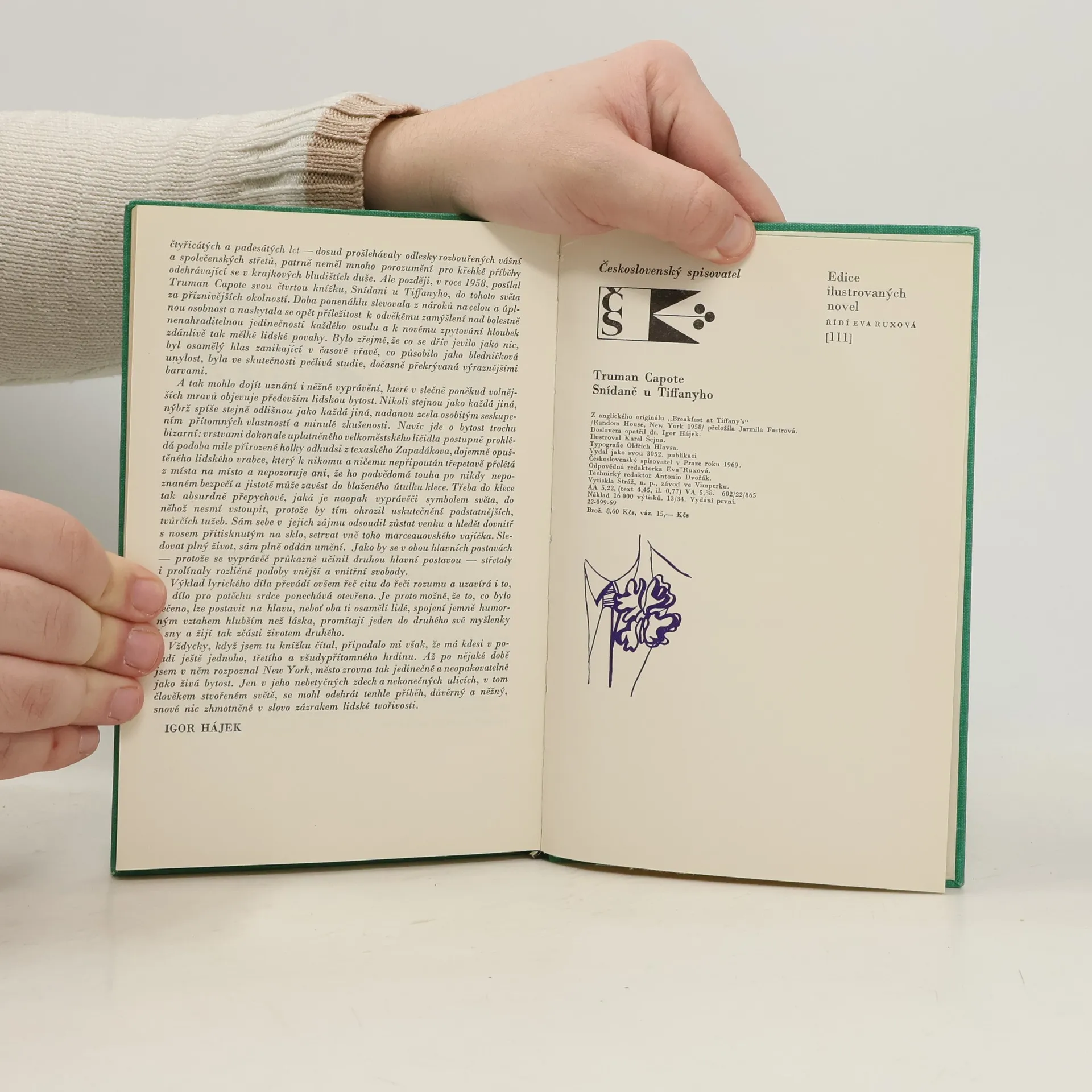 Novela o nesplněném a tragicky končícím snu lehké dívky, která má za sebou neradostné dětství, touží po spořádaném životě a k dosažení tohoto snu, reprezentovaného nábytkovým zařízením z obchodního domu Tiffany, používá své osobní přitažlivosti a slabůstek starších bohatšíchpánů. Novela byla přeložena do mnoha jazyků a byla též zfilmována. Doslov: Igor Hájek
