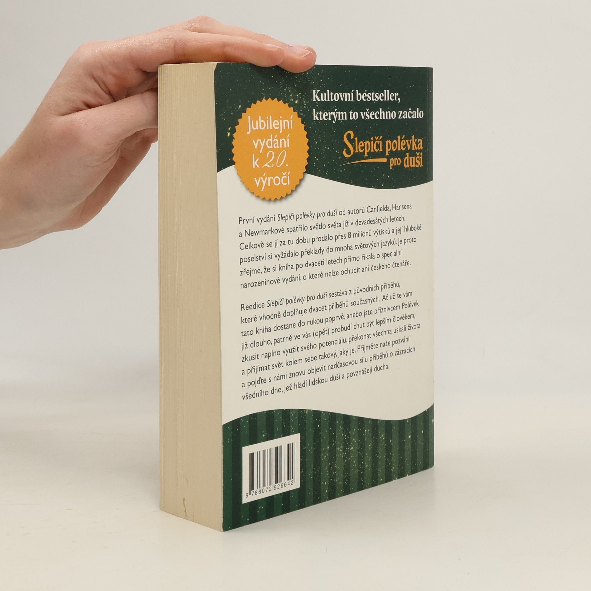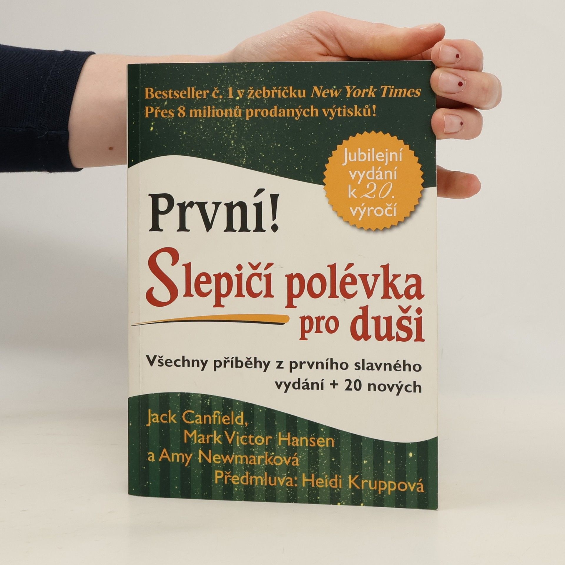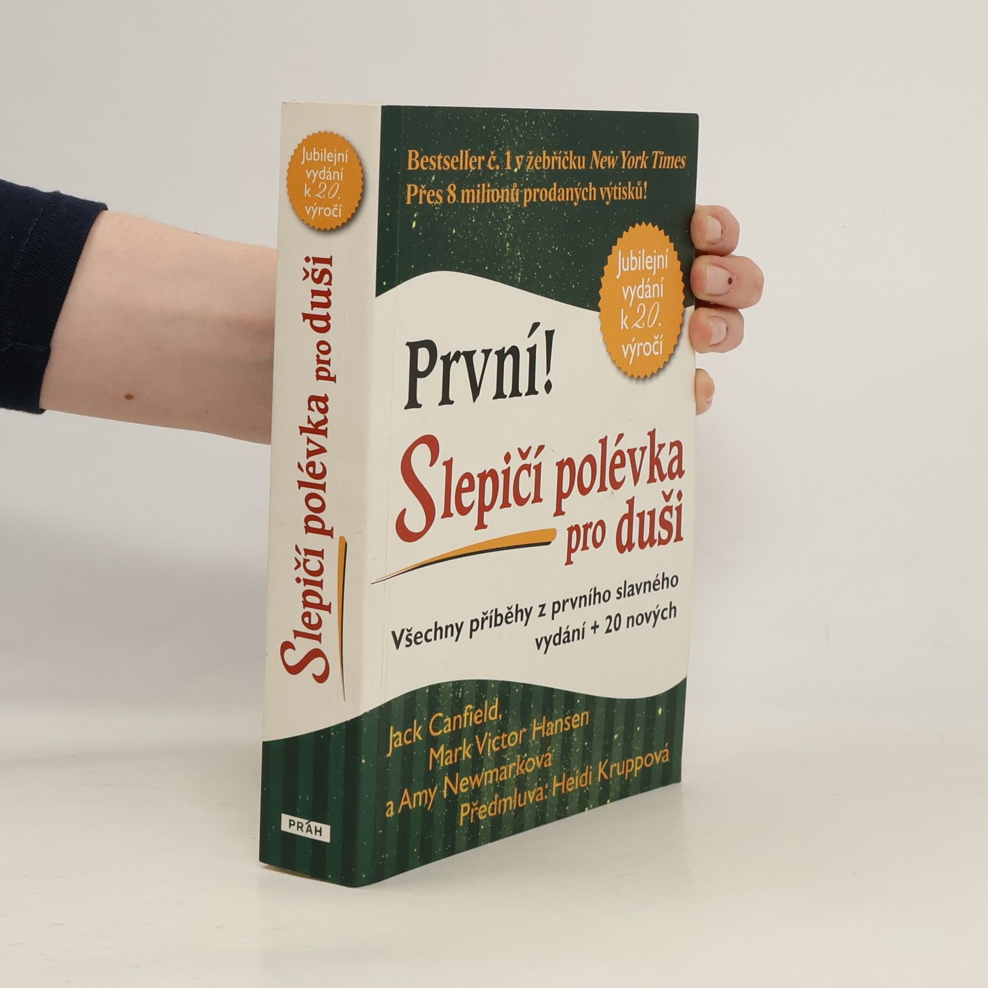 První vydání Slepičí polévky pro duši od autorů Canfielda, Hansena a Newmarkové spatřilo světlo světa již v devadesátých letech. Celkově se jí za tu dobu prodalo přes 8 milionu výtisků a její hluboké poselství si vyžádalo překlady do mnoha světových jazyků. Je proto zřejmé, že si kniha po dvaceti letech přímo říkala o speciální narozeninové vydání, o které nelze ochudit ani českého čtenáře. Reedice Slepičí polévky pro duši sestává z původních příběhů, které vhodně doplňuje dvacet příběhů současných. Ať už se vám tato kniha dostane do rukou poprvé, anebo jste příznivcem Polévek již dlouho, patrně ve vás (opět) probudí chuť být lepším člověkem, zkusit naplno využít svého potenciálu, překonat všechna úskalí života a přijímat svět kolem sebe takový, jaký je. Přijměte naše pozvání a pojďte s námi znovu objevit nadčasovou sílu příběhů o zázracích všedního dne, jež hladí lidskou duši a povznášejí ducha.