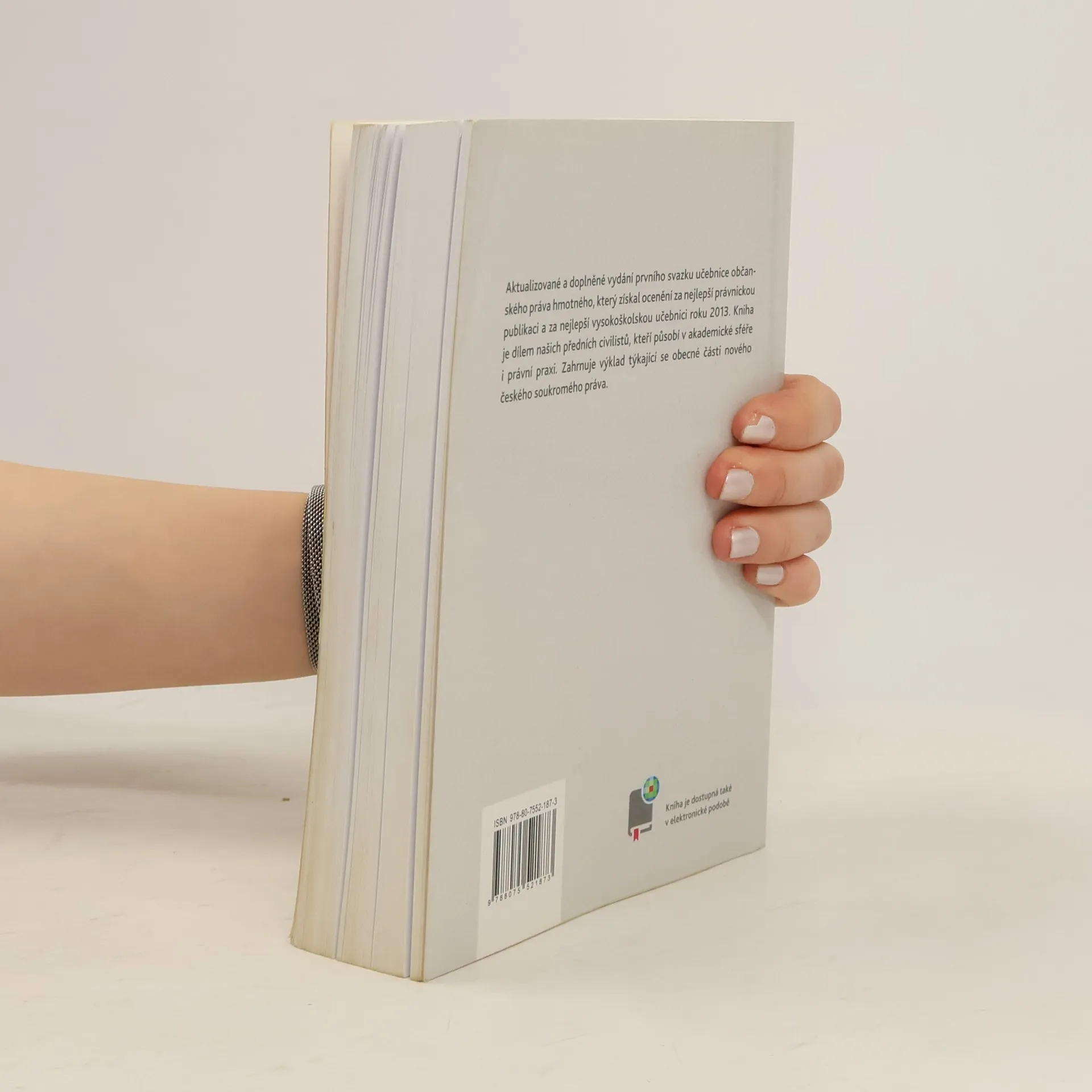 Aktualizované a doplněné vydání prvního svazku učebnice občanského práva hmotného, který získal ocenění za nejlepší právnickou publikaci a za nejlepší vysokoškolskou učebnici roku 2013. Kniha je dílem našich předních civilistů, kteří působí v akademické sféře i právní praxi. Zahrnuje výklad týkající se obecné části nového českého soukromého práva.