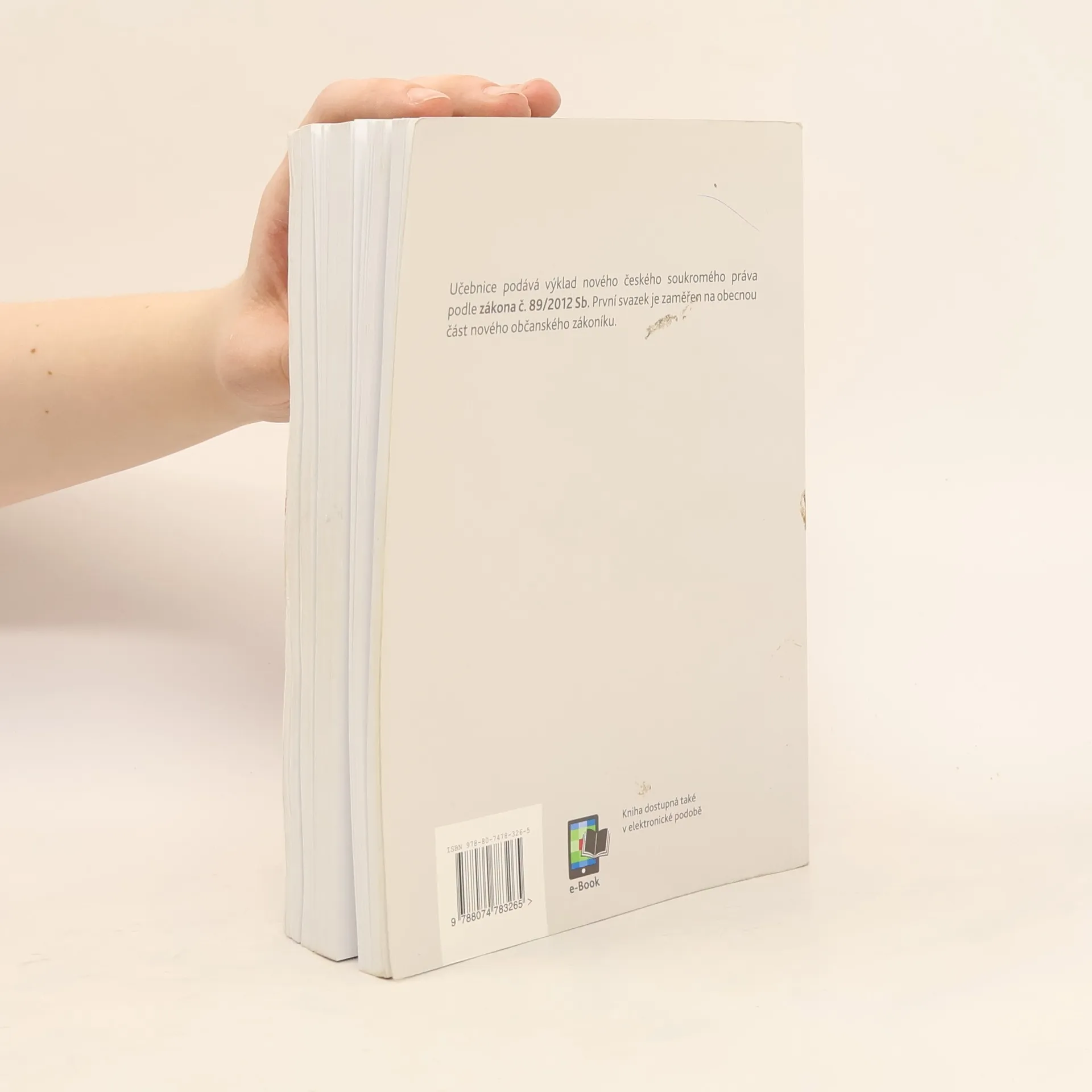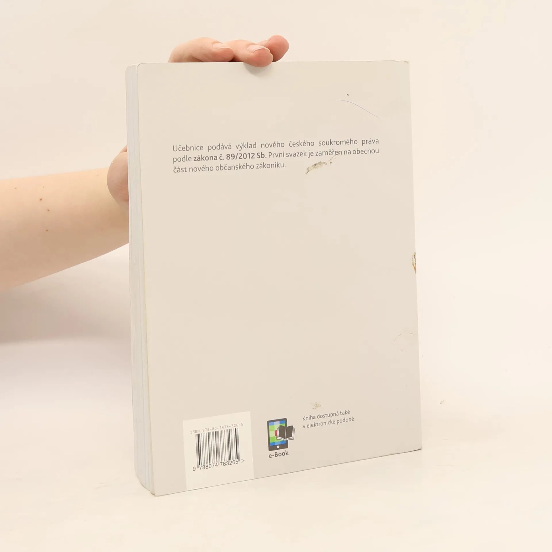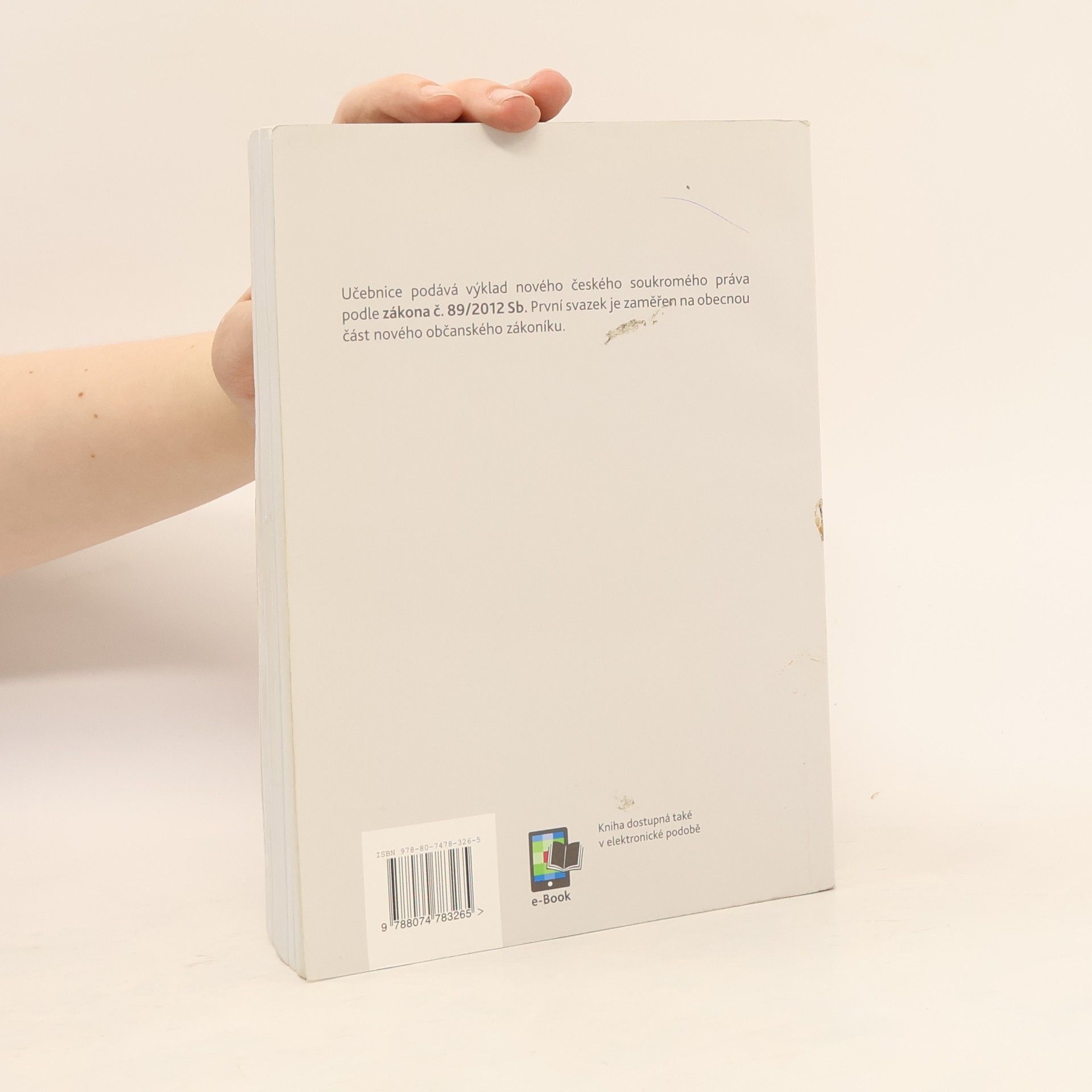 Učební pomůcka od osvědčeného autorského kolektivu z katedry občanského práva Právnické fakulty Univerzity Karlovy podává výklad nového českého soukromého práva podle zákona č. 89/2012 Sb. První svazek učebnice obsahuje výklad obecné části zákona (§ 1 až 654). V knize je vyložena systematika nového českého občanského práva, jeho vztah k novému zákonu o mezinárodním právu soukromém (č. 91/2012 Sb.) i zákonu o obchodních korporacích (č. 90/2012 Sb.), stejně jako nejdůležitější pojmy obecné části (právní jednání, fyzické a právnické osoby, spotřebitel, podnikatel, institut zastoupení, prokura, pojem věci, promlčení, prekluze a další). První svazek učebnice představuje ucelené myšlenkové východisko pro výklad dalších částí nového občanského zákoníku, který bude následovat v dalších knihách.