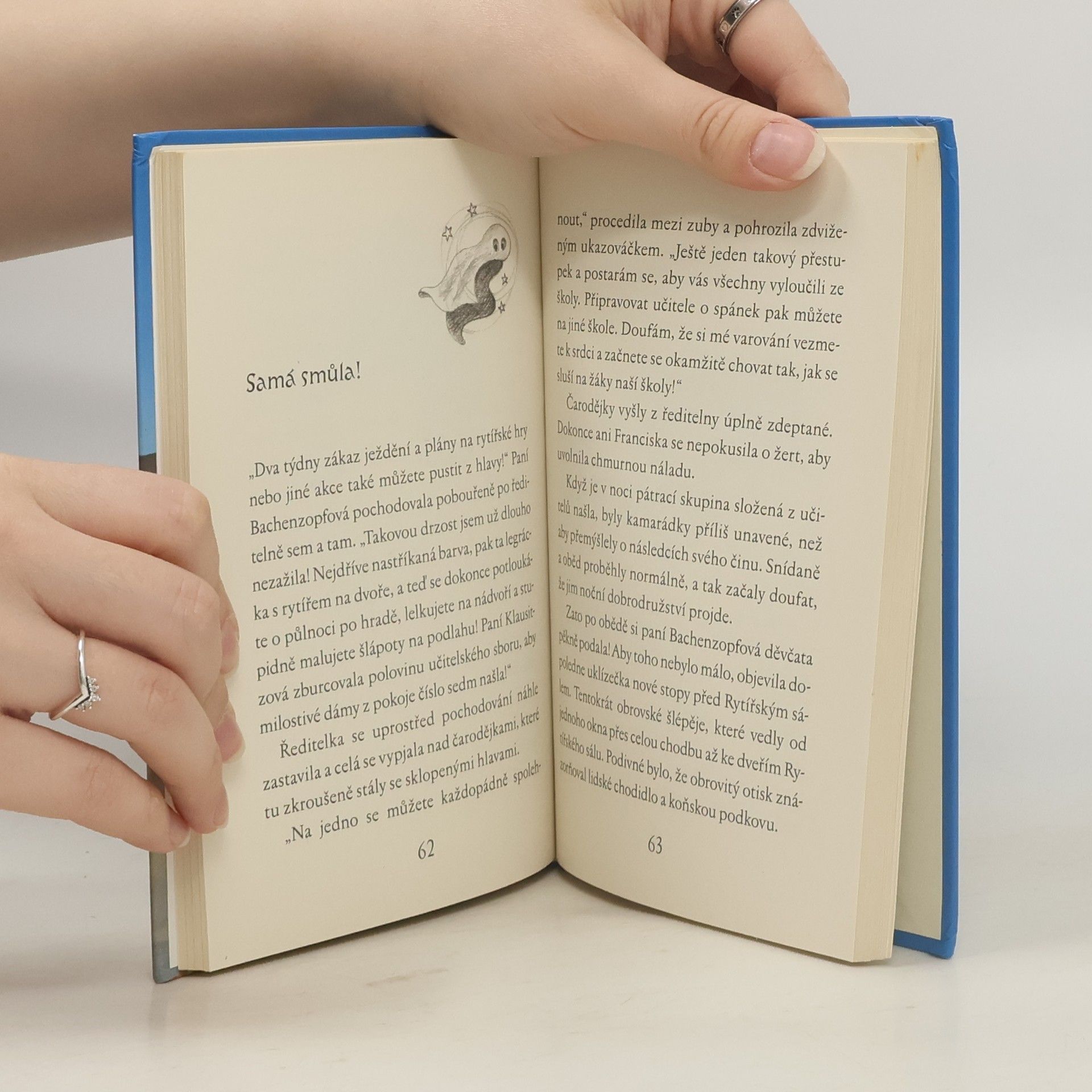 Staň se čarodějkou z jezdecké školy a čaruj s kouzelnickou hvězdou!Na Koňském hrádku se chystají velkolepé hradní slavnosti. Jana, Jula, Miki a Franciska na nich chtějí předvést rytířské hry na koních. Uprostřed příprav se však na školním dvoře zjeví tajemný přízrak! A to není všechno! Školní chodby někdo pocákal červenou barvou a na podlaze se objevily obří stopy. Podezření padne na naše čtyři kamarádky. Co za tím vším vězí? Skutečná strašidla přece neexistují. Nebo snad ano? Čarodějky z jezdecké školy – čtení pro holky, kterým kouzla nejsou cizí.
