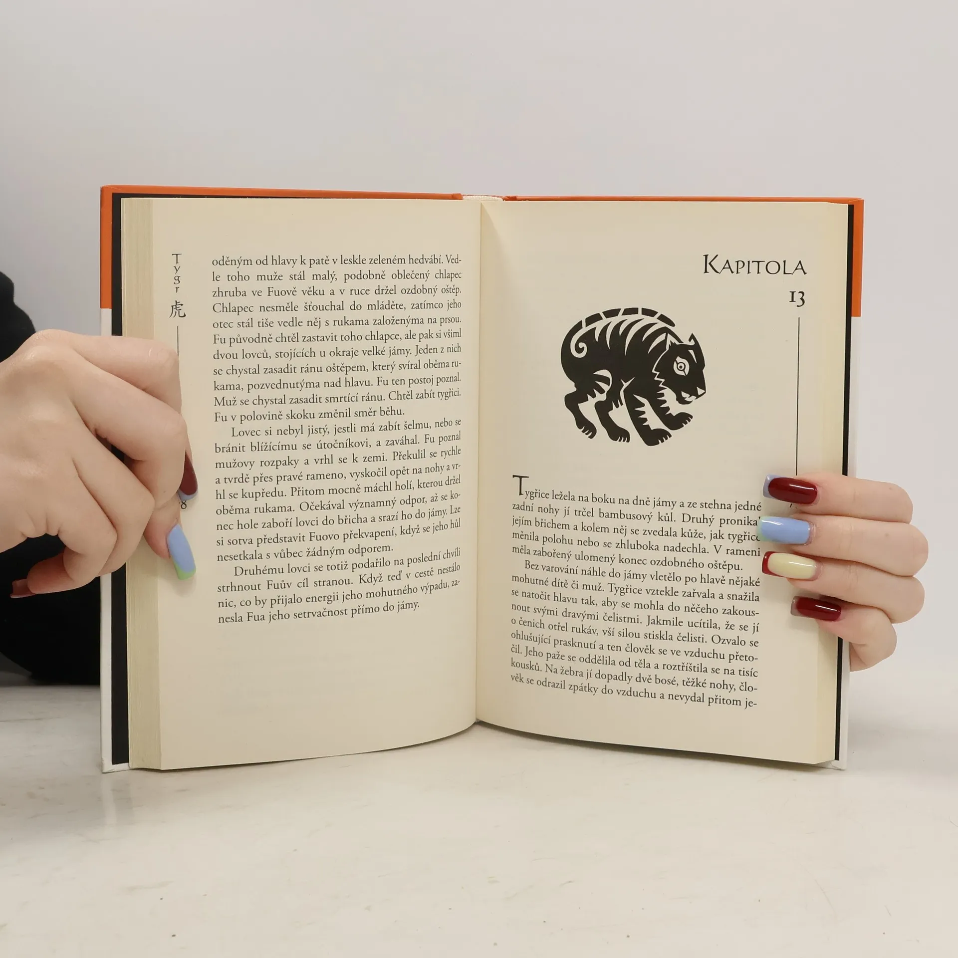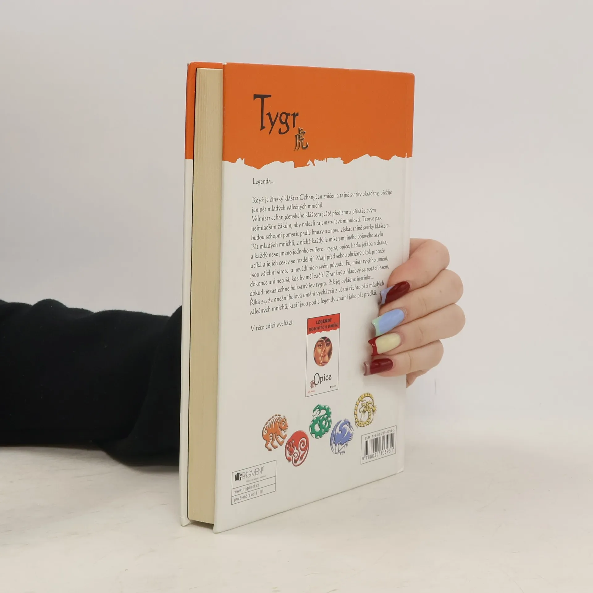 Legenda o pěti předcích začíná! Když je čínský klášter Cchangčen zničen a tajné svitky ukradeny, přežije jen pět mladých válečných mnichů, z nichž každý je mistrem jiného bojového stylu a každý nese jméno jednoho zvířete - tygra, opice, hada, jeřába a draka. Podle legendy dnešní bojová umění vycházejí z učení těchto pěti mladých válečných mnichů - pěti předků. Tato kniha pojednává o tom co dělal mnich Fu (tygr). Na knihu navazuje příběh Opice, Had a Jeřáb.