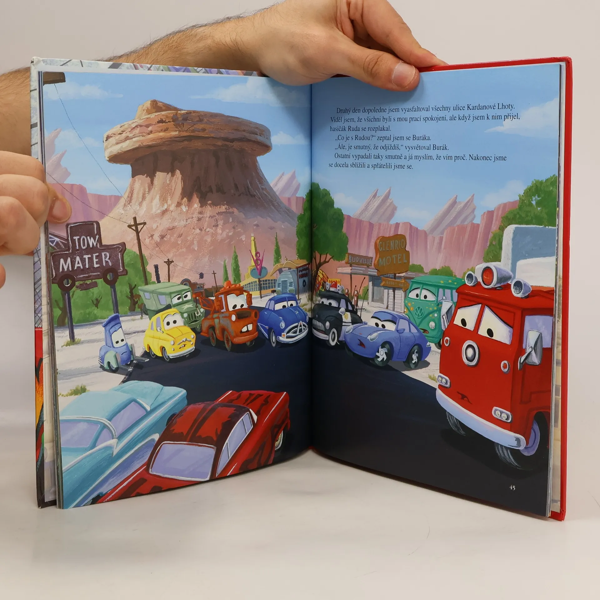 Disney • Pixar Vítězství v Šampionátu o Zlatý píst je to jediné, po čem začínající závoďák Blesk McQueen touží. Ale pak se všechno nějak podivně zamotá a on se místo na závodní trati ocitne v Kardanové Lhotě, zapomenutém městečku na staré Silnici 66. A tam Blesk přijde na to, že život nejsou jen závody a že nevyhrává vždycky ten, kdo zrovna první přejede cílovou čáru.