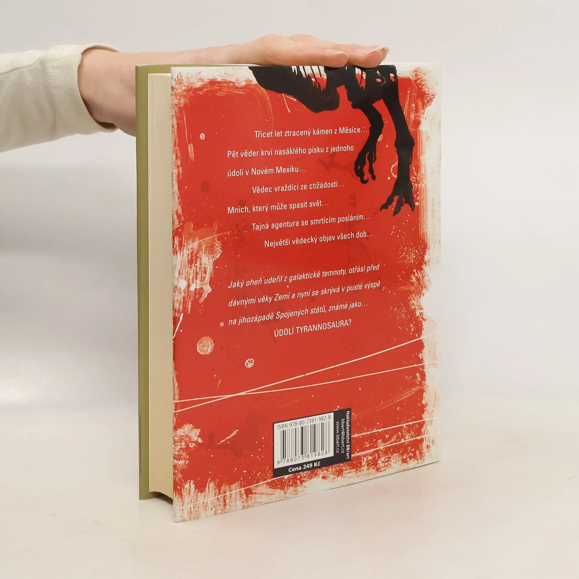 V pustině Nového Mexika je zavražděn hledač dinosaurů. Umírajícího nalezne místní usedlík Tom Broadbent a převezme od něj zápisník spolu se slibem, že ho doručí jeho dceři. Rozjíždí se napínavé pátrání Toma po totožnosti neznámého a obsahu šifrovaného zápisníku. Pomůže mu svérázný mnich – bývalý šifrant CIA – a zjistí, že jde o ohromující objev: historicky nejzachovalejší úplnou zkamenělinu tyrannosaura. Ale vše se komplikuje – policie z vraždy prospektora podezírá právě Toma a navíc po jeho stopách jde i nájemný vrah ve službách bezskrupulózního paleontologa, který si chce objev přivlastnit a získat tak slávu i bohatství. Aby získal zápisník s lokací nálezu, neváhá unést Broadbentovu manželku. Vězí ji v opuštěném dole a požaduje jako výkupné zápisník. Tom, na útěku před policií, svou ženu zachrání a společně prchají před zabijákem. Avšak do hry vstoupí vyšší moc – tajné oddělení NSA, které si spojí dohromady záhadný nález na Měsíci a vzorky fosilní tkáně T. Rexe. V obojím se totiž nalezly vzorky mimozemského života, který mohl způsobit vyhynutí dinosaurů a teď se znovu aktivuje. NSA se snaží likvidovat všechny zúčastněné a vše spěje ke strhujícímu finále, kde přece jen zvítězí lidskost nad „nadřazenými“ zájmy. V posledním odstavci navíc zazní nová hypotéza o vývoji druhů na planetě Zemi.