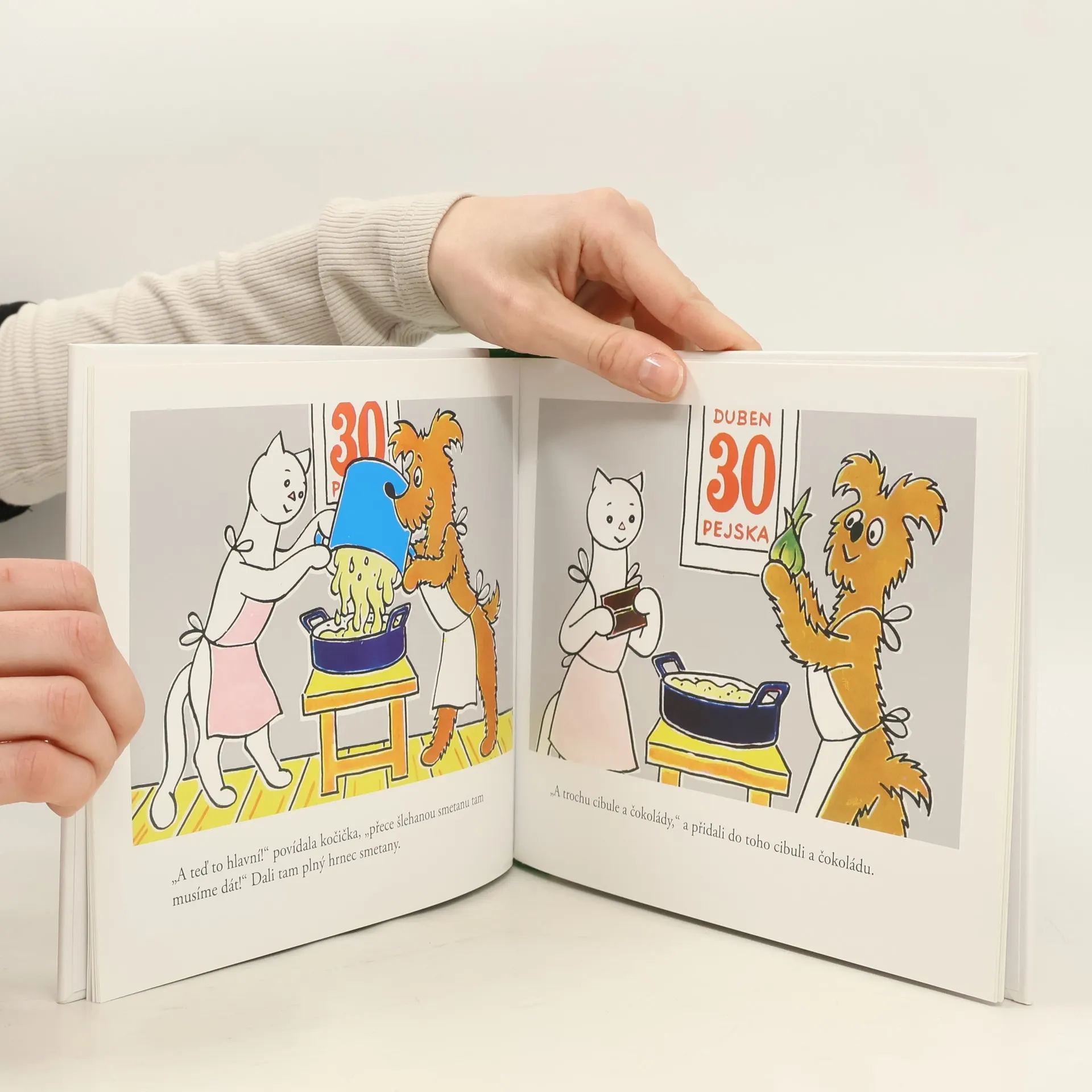 Zpracováno podle kresleného filmu. Milé děti i ostatní, oznamujeme Vám, že je všechno v nejlepším pořádku, a tak se spolu zase scházíme v téhle další knížce podle Povídání o pejskovi a kočičce, to je tedy celé o nás dvou, které napsal pan spisovatel Josef Čapek. Chceme k tomu ještědodat, že jsme oba tuze rádi, že nás tak pěkně vypodobnil na svých obrázcích. Tahle nová knížka o nás se proto jmenuje Jak si dělali dort, protože jsme si jednou opravdu dělali takový velikánský dort, když jsme měli náhodou dohromady svátek i narozeniny.Bylo to ale také naposled, protože jsme poznali, že mnoho dobrého škodí. Ale víc už Vám nemůžeme prozradit, protože byste pak už snadno uhádli, jak to nakonec všechno dopadlo.Tak si pěkně čtěte a ten náš recept na opravdický dort snad ani mamince neukazujte. Raději ji poproste, ať Vám k Vašemu svátku nebo narozeninám udělá dort podle sebe nebo podle kuchařské knížky. Přejeme Vám dobré pochutnání. Tak nazdar a v úctě, Kočička a Pejsek