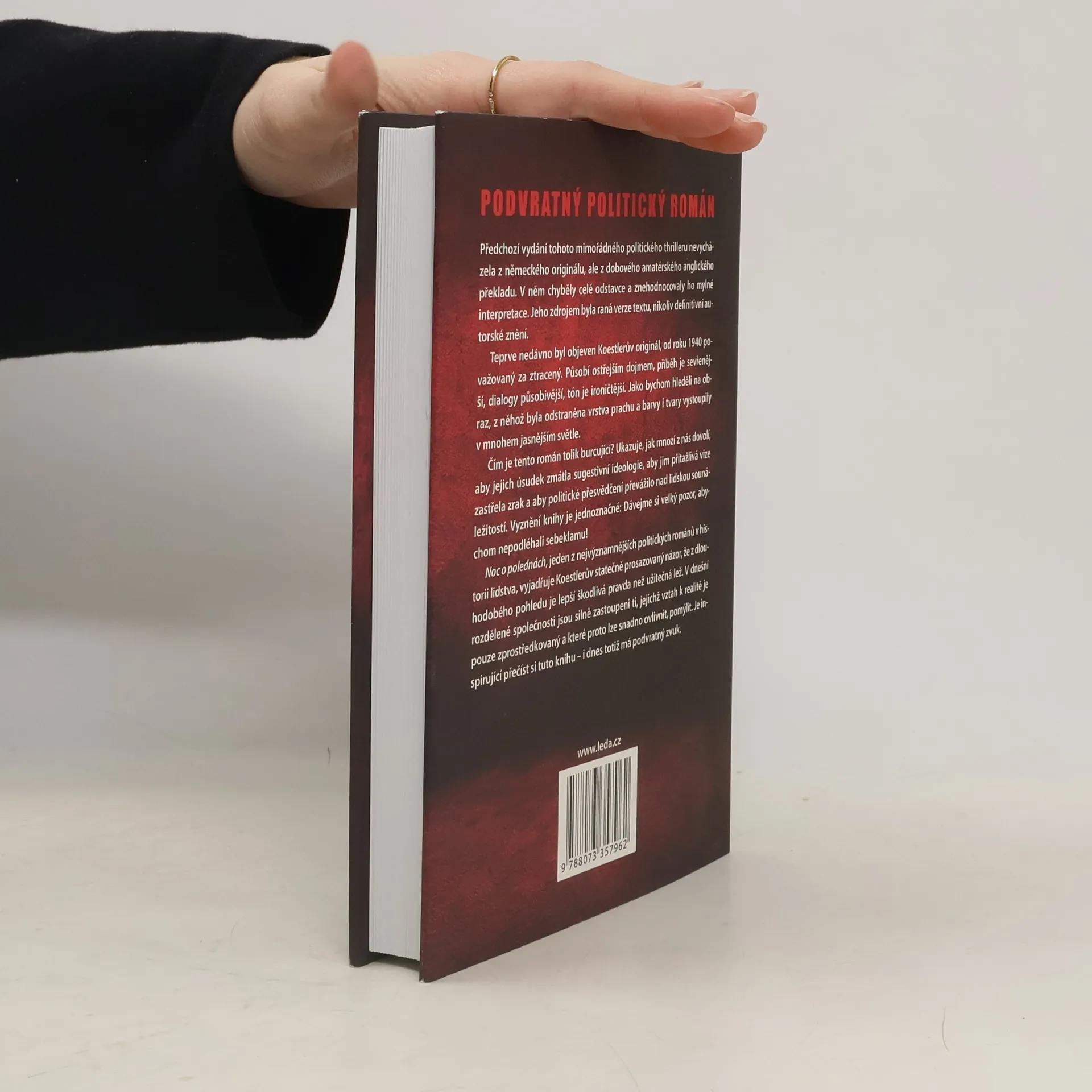 Předchozí vydání tohoto mimořádného politického thrilleru nevycházela z německého originálu, ale z dobového amatérského anglického překladu. V něm chyběly celé odstavce a znehodnocovaly ho mylné interpretace. Jeho zdrojem byla raná verze textu, nikoliv definitivní autorské znění.Teprve nedávno byl objeven Koestlerův originál, od roku 1940 považovaný za ztracený. Působí ostřejším dojmem, příběh je sevřenější, dialogy působivější, tón je ironičtější. Jako bychom hleděli na obraz, z něhož byla odstraněna vrstva prachu a barvy i tvary vystoupily v mnohem jasnějším světle.Čím je tento román tolik burcující? Ukazuje, jak mnozí z nás dovolí, aby jejich úsudek zmátla sugestivní ideologie, aby jim přitažlivá vize zastřela zrak a aby politické přesvědčení převážilo nad lidskou sounáležitostí. Vyznění knihy je jednoznačné: Dávejme si velký pozor, abychom nepodléhali sebeklamu!Noc o polednách, jeden z nejvýznamnějších politických románů v historii lidstva, vyjadřuje Koestlerův statečně prosazovaný názor, že z dlouhodobého pohledu je lepší škodlivá pravda než užitečná lež. V dnešní rozdělené společnosti jsou silně zastoupeni ti, jejichž vztah k realitě je pouze zprostředkovaný a které proto lze snadno ovlivnit, pomýlit. Je inspirující přečíst si tuto knihu – i dnes totiž má podvratný zvuk.