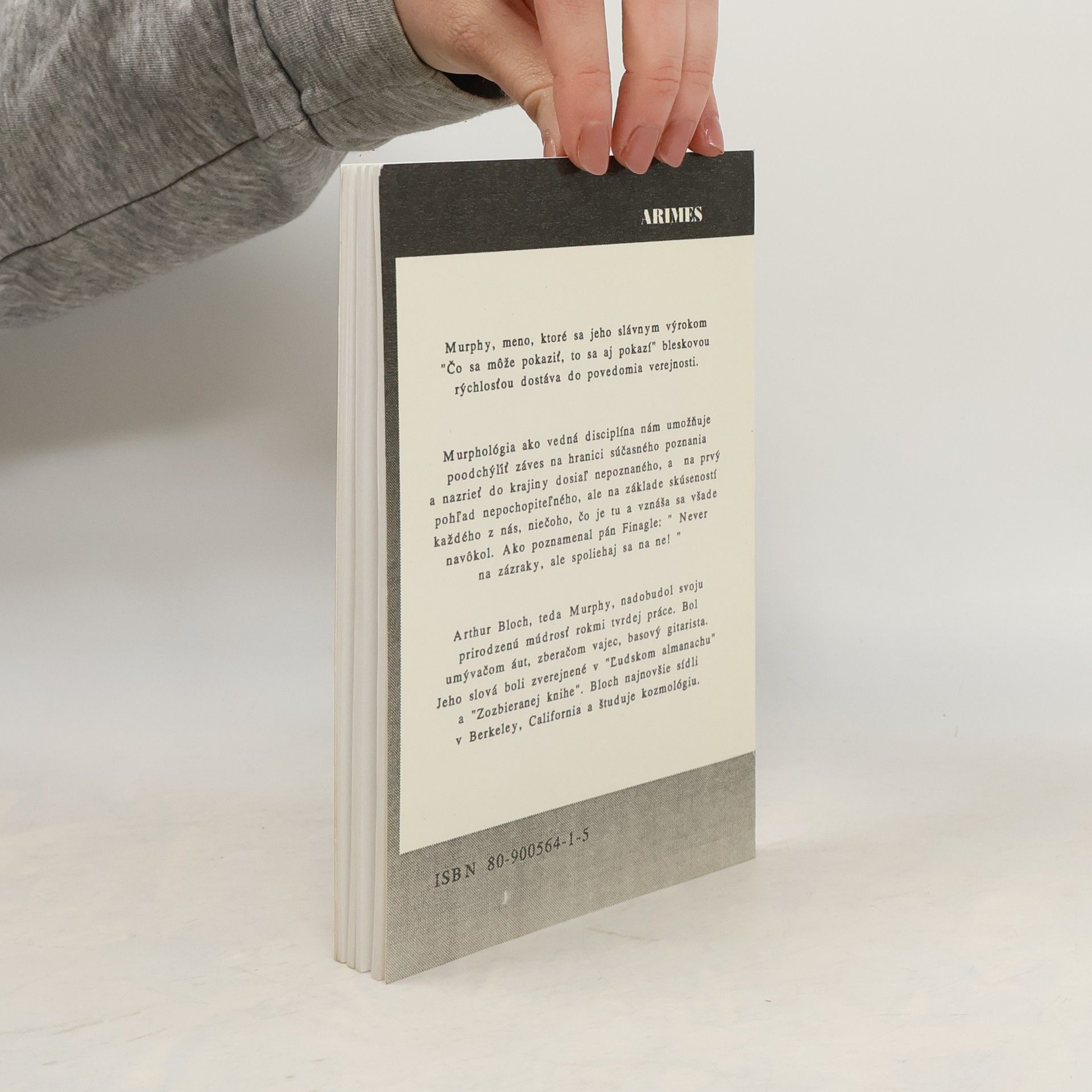 Murphy, meno, ktoré sa jeho slávnym výrokom "Čo sa môže pokaziť, to sa aj pokazí" bleskovou rýchlosťou dostáva do povedomia verejnosti. Murphológia ako vedná disciplína nám umožňuje poodchýliť záves na hranici súčasného poznania a nazrieť do krajiny dosiaľ nepoznaného, a na prvý pohľad nepochopiteľného, ale na základe skúseností každého z nás, niečoho, čo je tu a vznáša sa všade navôkol. Ako poznamenal pán Finagle: ” Never na zázraky, ale spoliehaj sa na ne! " Arthur Bloch, teda Murphy, nadobudol svoju prirodzenú múdrosť rokmi tvrdej práce. Bol umývačom áut, zberačom vajec, basový gitarista. Jeho slová boli zverejnené v "Ľudskom almanachu" a "Zozbieranej knihe". Bloch najnovšie sídli v Berkeley, California a študuje kozmológiu.