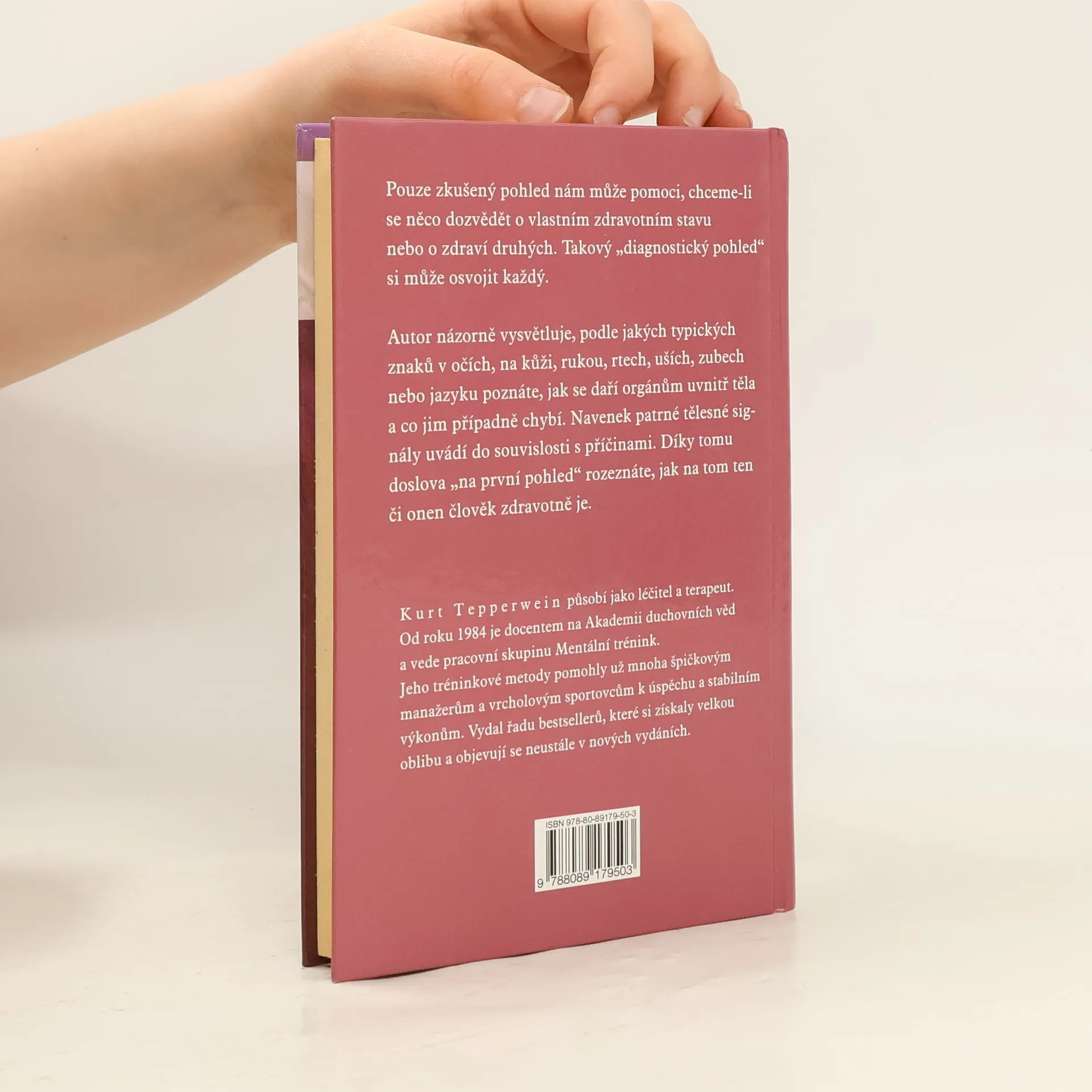 Patofyziognomie - Jak číst řeč těla a porozumět jí. Pouze zkušený pohled nám může pomoci, chceme-li se dozvědět něco o vlastním zdravotním stavu nebo zjistit, jak jsou na tom lidé v našem okolí. Tento "diagnostický pohled" si může osvojit každý. Tato kniha prozrazuje, které typické znaky v očích, na kůži, rukou, rtech, uších, zubech nebo jazyku svědčí o tom, jak se daří orgánům uvnitř těla a co jim případně chybí. Navenek patrné tělesné signály jsou tu uvedeny do souvislostí s příčinami. Díky tomu dokážeme doslova "na první pohled" poznat zdravotní stav člověka. Kurt Tepperwein je léčitel a terapeut. Od roku 1984 je docentem na Akademii duchovních věd a vede pracovní skupinu Mentální trénink. Jeho tréninkové metody pomohly už mnoha špičkovým manažerům a vrcholovým sportovcům k úspěchu a stabilním výkonům. Vydal řadu bestsellerů, které si získaly velkou oblibu a objevují se ve stále nových vydáních.