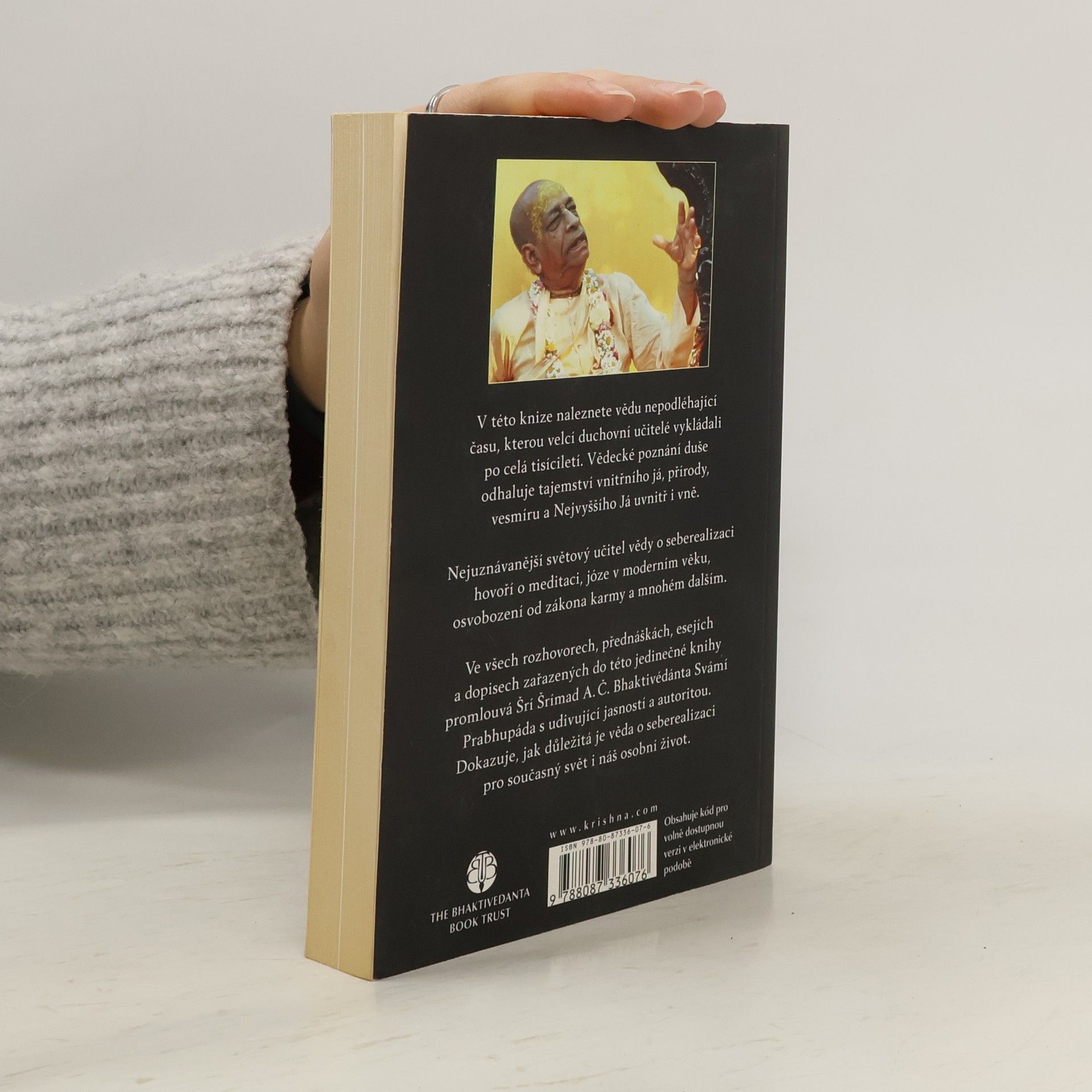 Druhé, rozšířené vydání Transcendentální poznání o duši v autorizovaném vědeckém podání Šríly Prabhupády. Kniha vysvětluje jógu, karmu, převtělování apod. Kniha "Vědecké poznání duše" je sice určena především pro zájemce o indické náboženství (vaišnavismus), neboť jejímautorem je proslulý zakladatel hnutí "Hare Krišna". To však nic nemění na tom, že texty z této knihy lze použít i k obecnému zamyšlení nad smyslem náboženství a nad existencí života a Boha. Tak co si myslíte? Existuje Bůh?