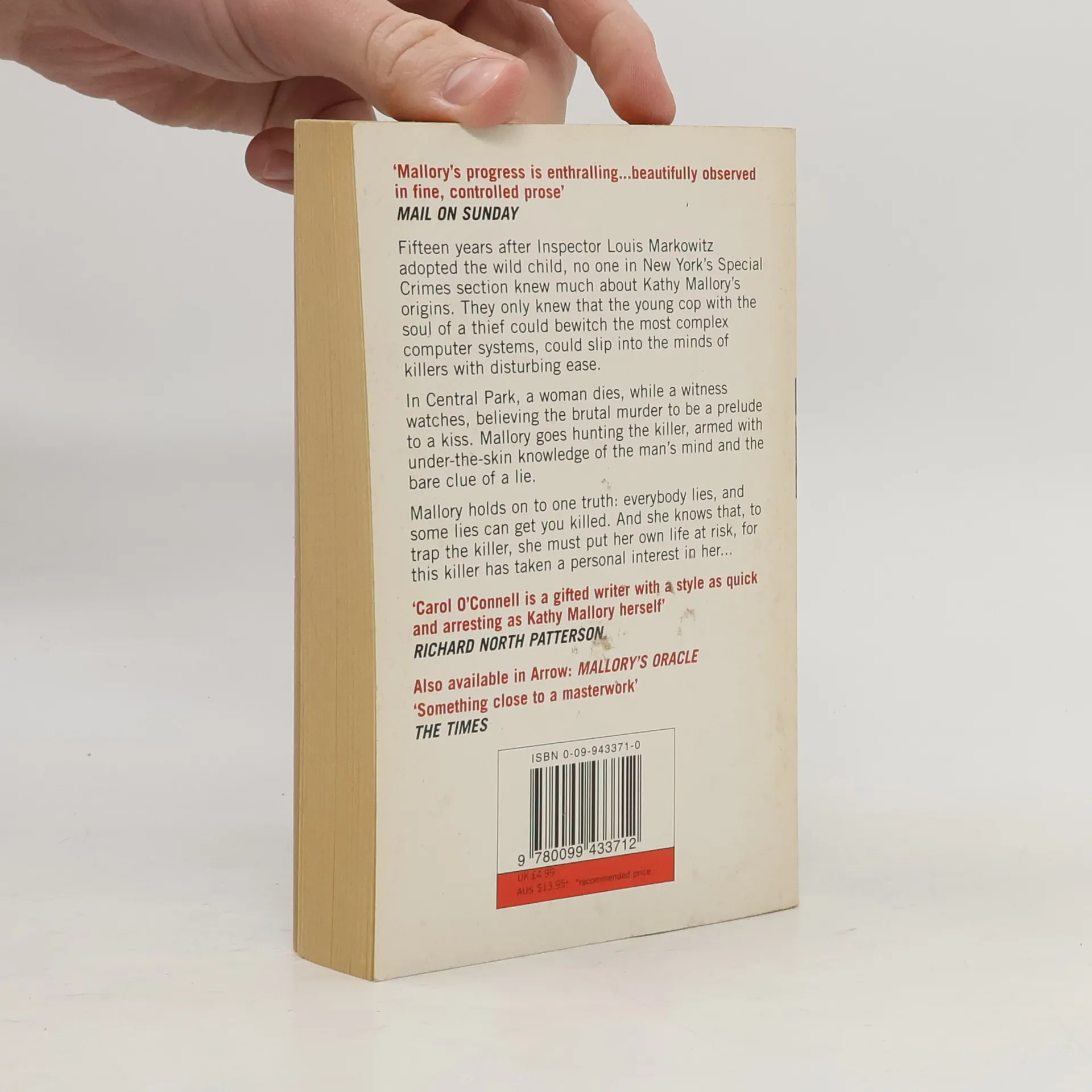 Fifteen years after Inspector Louis Markowitz adopted the wild child, no one in New York's Special Crimes section knew much about Kathy Mallory's origins. They only knew that the young cop with the soul of a thief could bewitch the most complex computer systems, could slip into the minds of killers with disturbing ease. In Central Park, a woman dies, while a witness watches, believing the brutal murder to be a prelude to a kiss. Mallory goes hunting the killer, armed with under the skin knowledge of the man's mind and the bare clue of a lie. Mallory holds on the one truth: everybody lies, and some lies can get you killed. And she knows that, to trap the killer, she must put her own life at risk, for this killer has taken a personal interest in her.