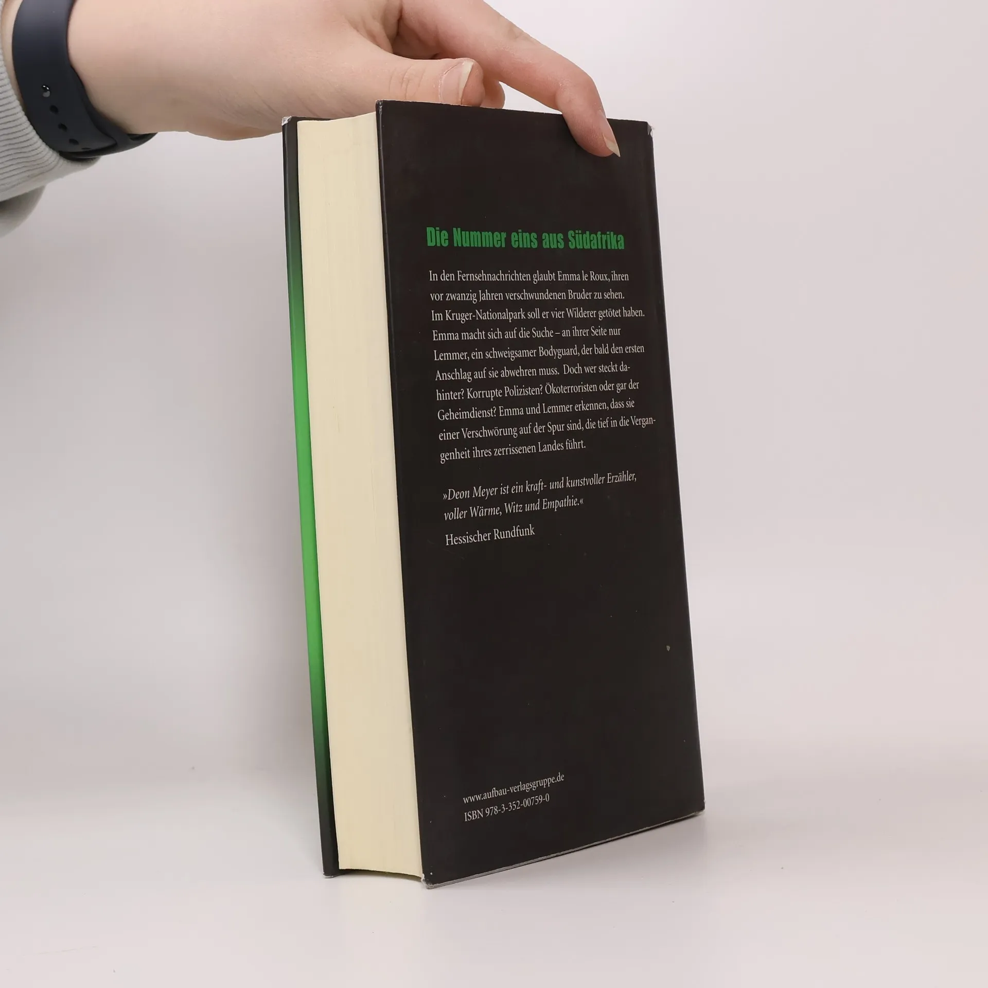 Er nennt sich Lemmer, er ist weiß, und sein Job ist es, unsichtbar zu sein, der Bodyguard im Schatten. Als Emma le Roux, eine weiße Südafrikanerin, ihn anheuert, hofft Lemmer auf einen schnellen, harmlosen Job. Er soll Emma zum Krüger Nationalpark begleiten. Sie meint, ihren vor zwanzig Jahre verschwundenen Bruder in den Fernsehnachrichten gesehen zu haben. Angeblich hat er skrupellos vier Wilderer getötet, die ein Reservat überfielen. Kaum sind sie im Krüger-Park angekommen, muss Lemmer eine giftige Schlange töten, die jemand in Emmas Apartment geschmuggelt hat. Er beginnt zu begreifen, dass er einer Sache auf der Spur ist, die etliche Nummern zu groß und zu gefährlich für ihn ist. Dann, nach ihrer ersten Liebesnacht wird Emma schwer verletzt. Allein versucht Lemmer ihren Angreifer zu finden.