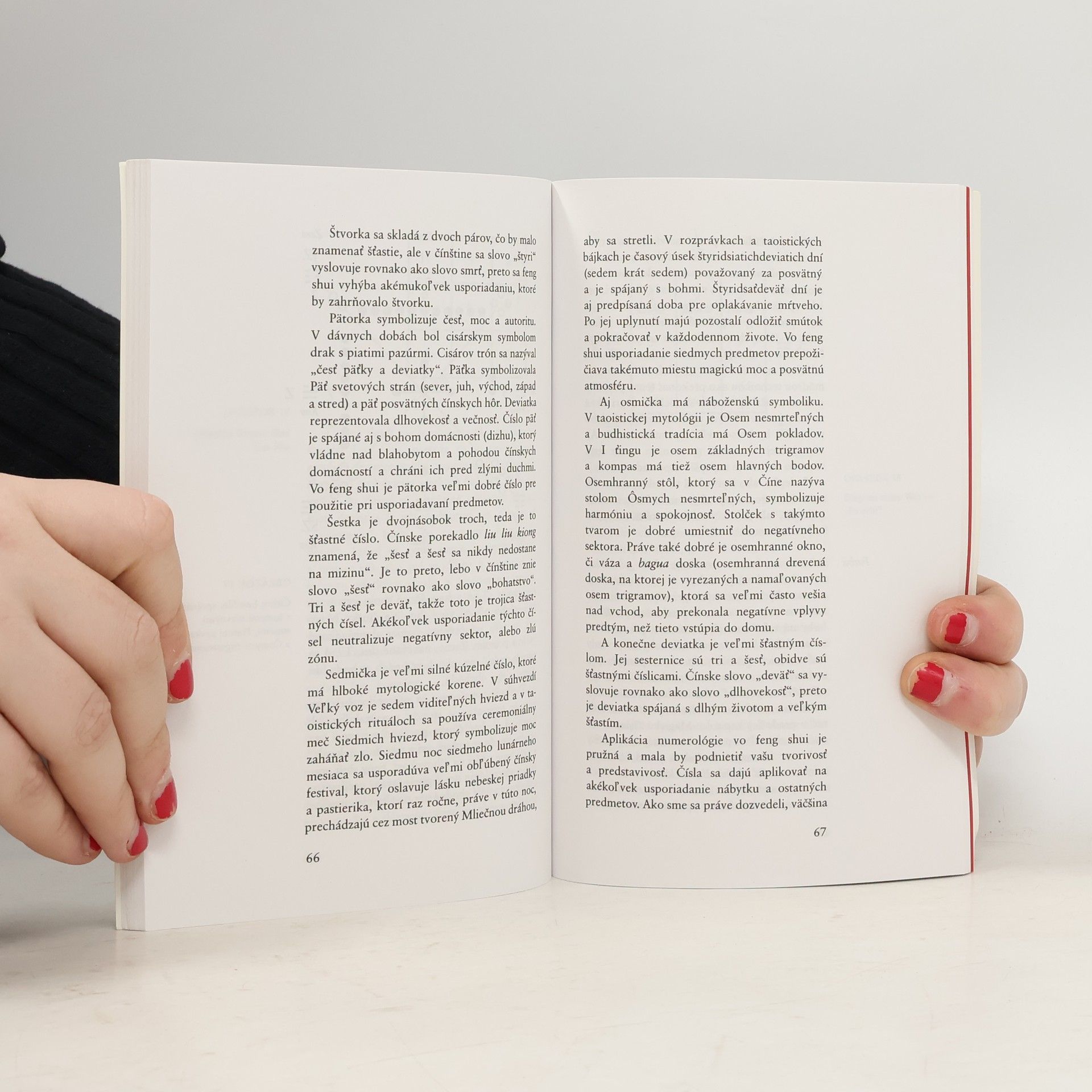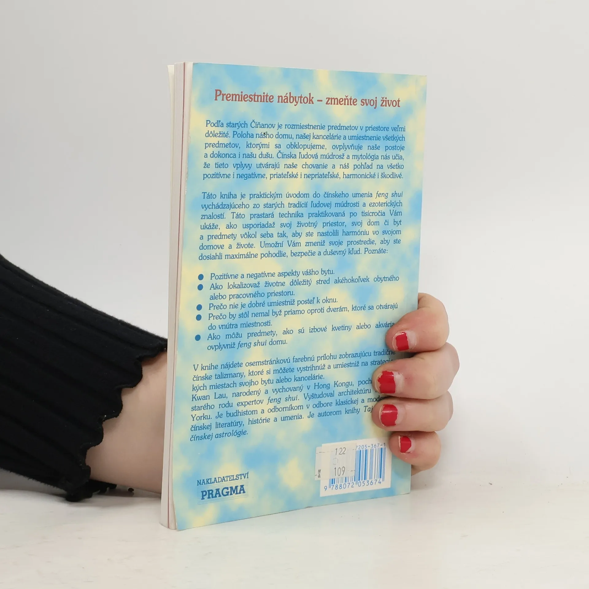 Tato kniha je praktickým úvodem do čínského umění feng shui vycházejícího ze starých trp.dic lidové moudrosti a ezoterických znalostí. Tato prastará technika, praktikovaná po tisíciletí, Vám ukáže, jak uspořádat životní prostor, svůj dům či byt a předměty kolem sebe tak, abyste nastolili harmonii ve svém domově a životě. Umožní Vám změnit své prostředí, abyste dosáhli maximálního pohodlí, bezpečí a duševního klidu. Poznáte: . Pozitivní a negativní aspekty vašeho bytu. . Jak lokalizovat životně důležitý střed jakéhokoli obytného nebo pracovního prostoru. . Proč není dobré umístit postel k oknu. . Proč by stůl neměl být přímo proti dveřím, které se otvírají dovnitř místnosti. . Proč je třeba použít teplých barev pro dekoraci severovýchodní a severozápadní části místnosti. . Jak mohou takové předměty, jako jsou pokojové květiny nebo akvária, ovlivnit feng shui domu.