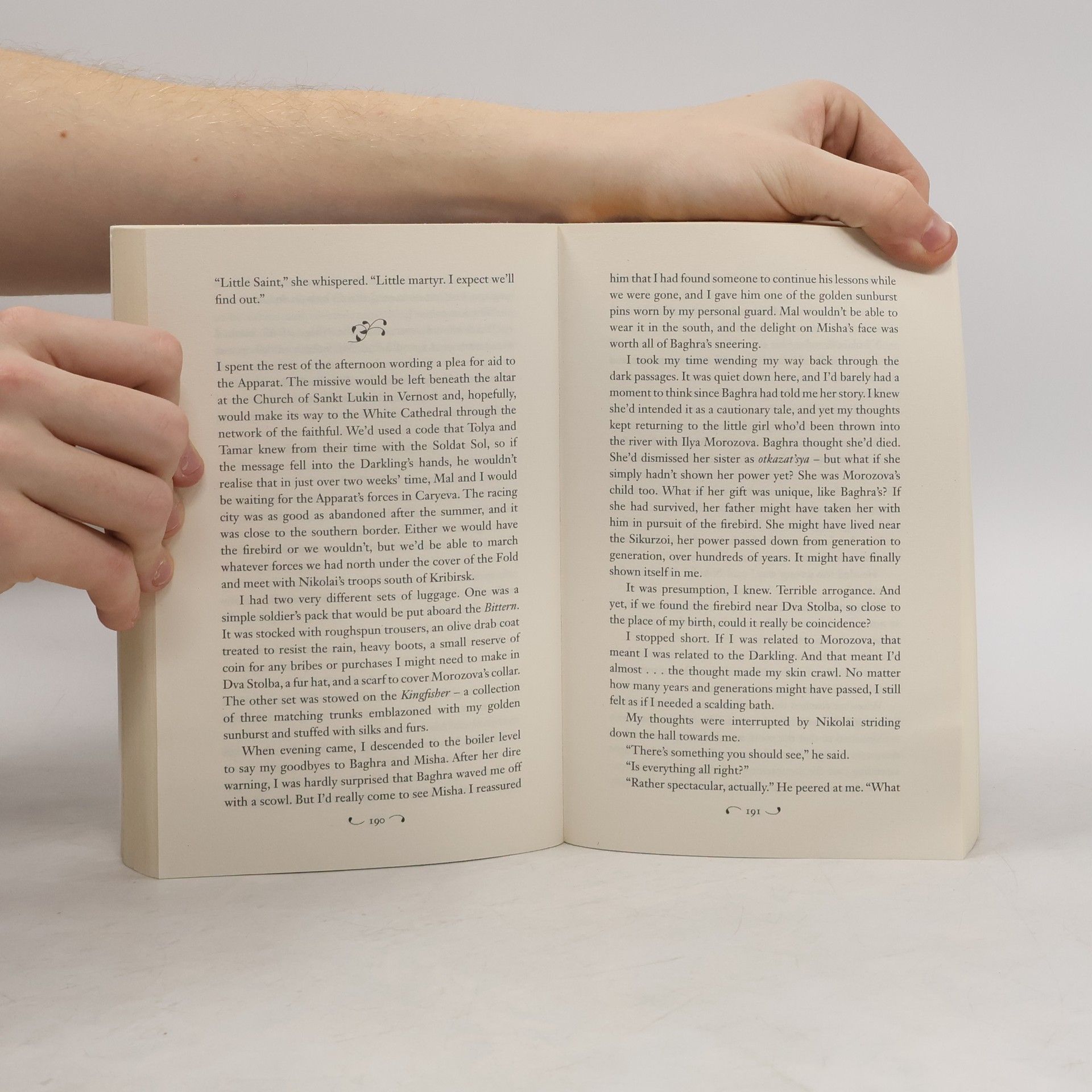 Soldier. Summoner. Saint. The nation's fate rests with a broken Sun Summoner, a disgraced tracker, and the shattered remnants of a once-great magical army. The Darkling rules from his shadow throne while a weakened Alina Starkov recovers from their battle under the dubious protection of the zealots who worship her as a Saint. Now her hopes lie with the magic of a long-vanished ancient creature and the chance that an outlaw prince still survives. As her allies and enemies race toward war, only Alina stands between her country and a rising tide of darkness that could destroy the world. To win this fight, she must seize a legend's power but claiming the firebird may be her ruin