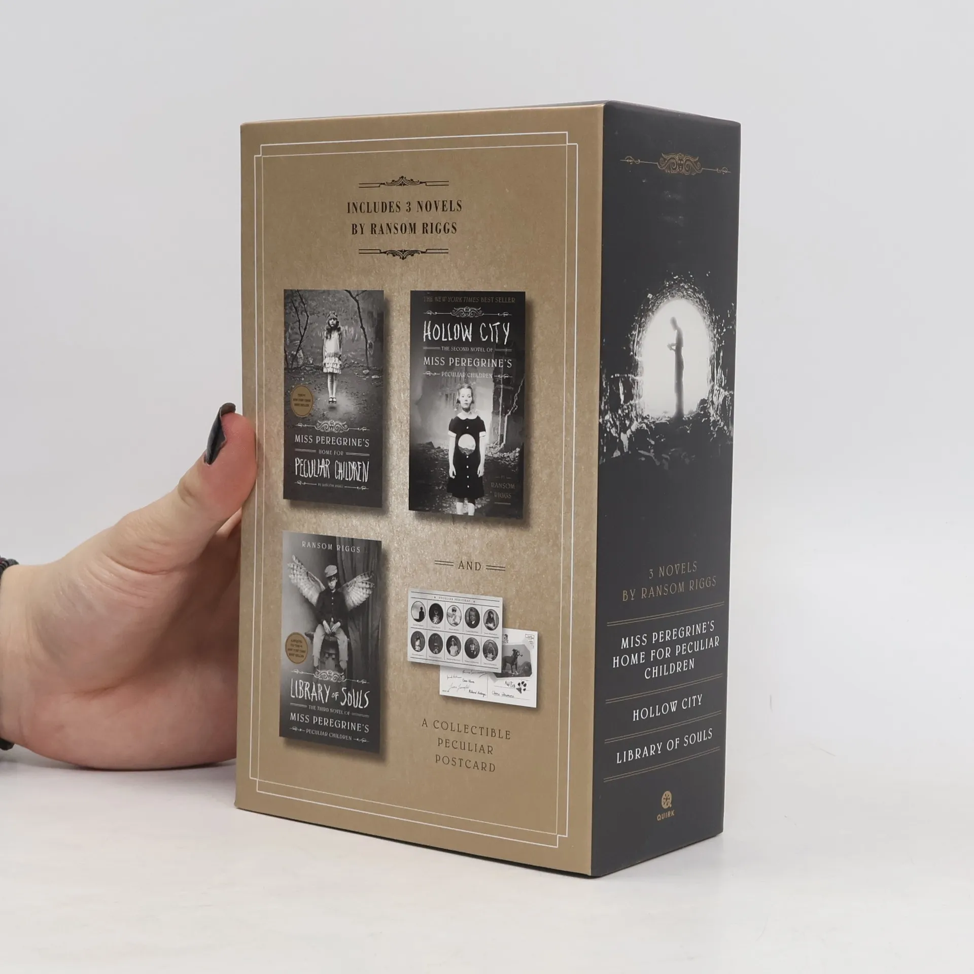 This beautifully designed slipcase contains the #1 New York Times best seller and its two sequels. The first installment introduces a mysterious island, an abandoned orphanage, and a collection of curious photographs, creating a unique blend of fiction and photography. The story begins with a tragic event that leads sixteen-year-old Jacob Portman to a remote Welsh island, where he uncovers the ruins of Miss Peregrine's Home for Peculiar Children. In the sequel, set in September 1940, ten peculiar children are on the run from deadly monsters, relying on their headmistress, who is trapped in a bird's body. Jacob and his friends embark on a perilous journey to London, the peculiar capital, seeking a cure for Miss Peregrine amid the dangers of a war-torn city. The final book follows Jacob, his girlfriend Emma Bloom, and their talking dog as they confront sinister wights threatening the future of peculiar children. Jacob must navigate through history one last time to rescue his friends from a heavily guarded fortress, with unexpected allies joining their quest. This thrilling trilogy offers a captivating reading experience filled with adventure and intrigue.