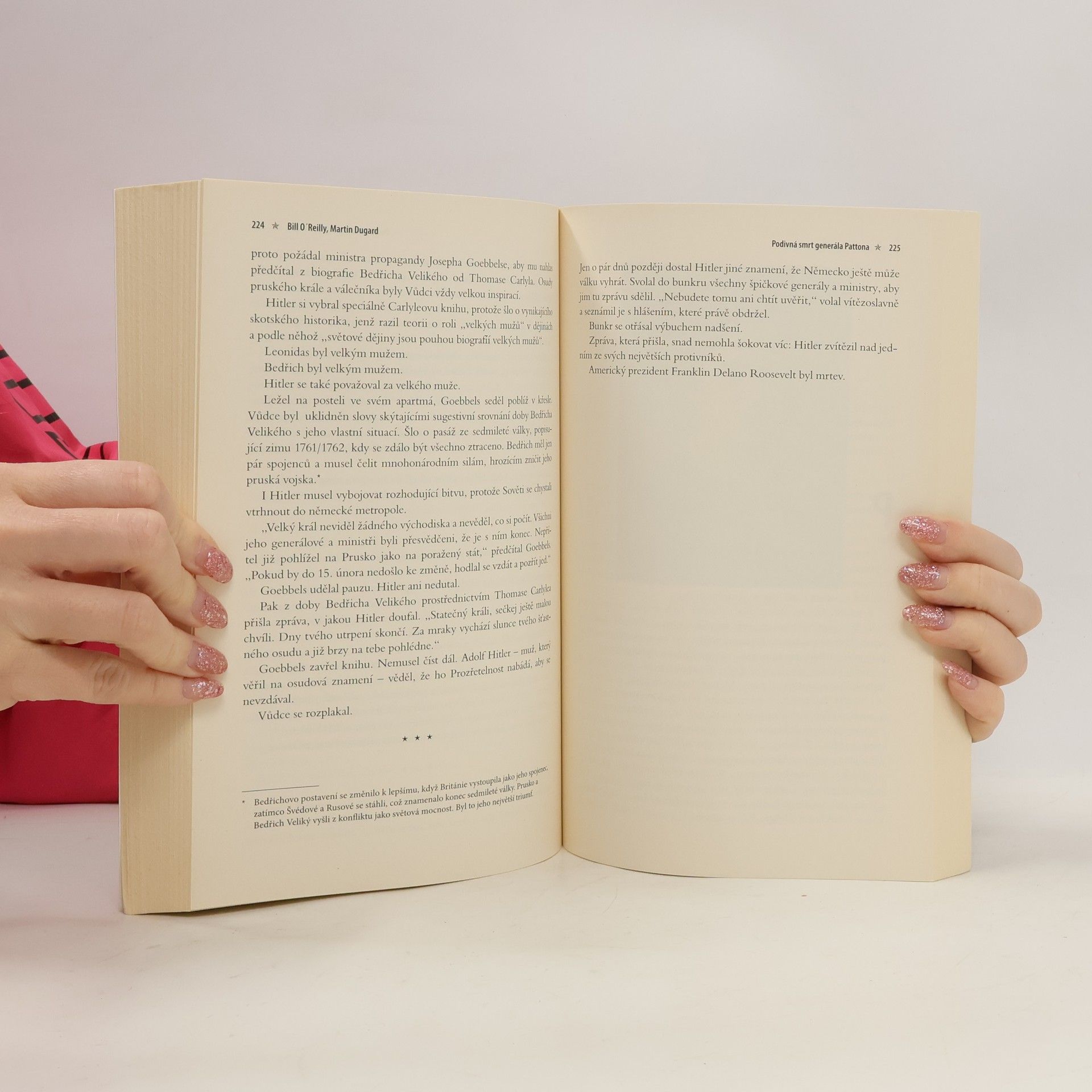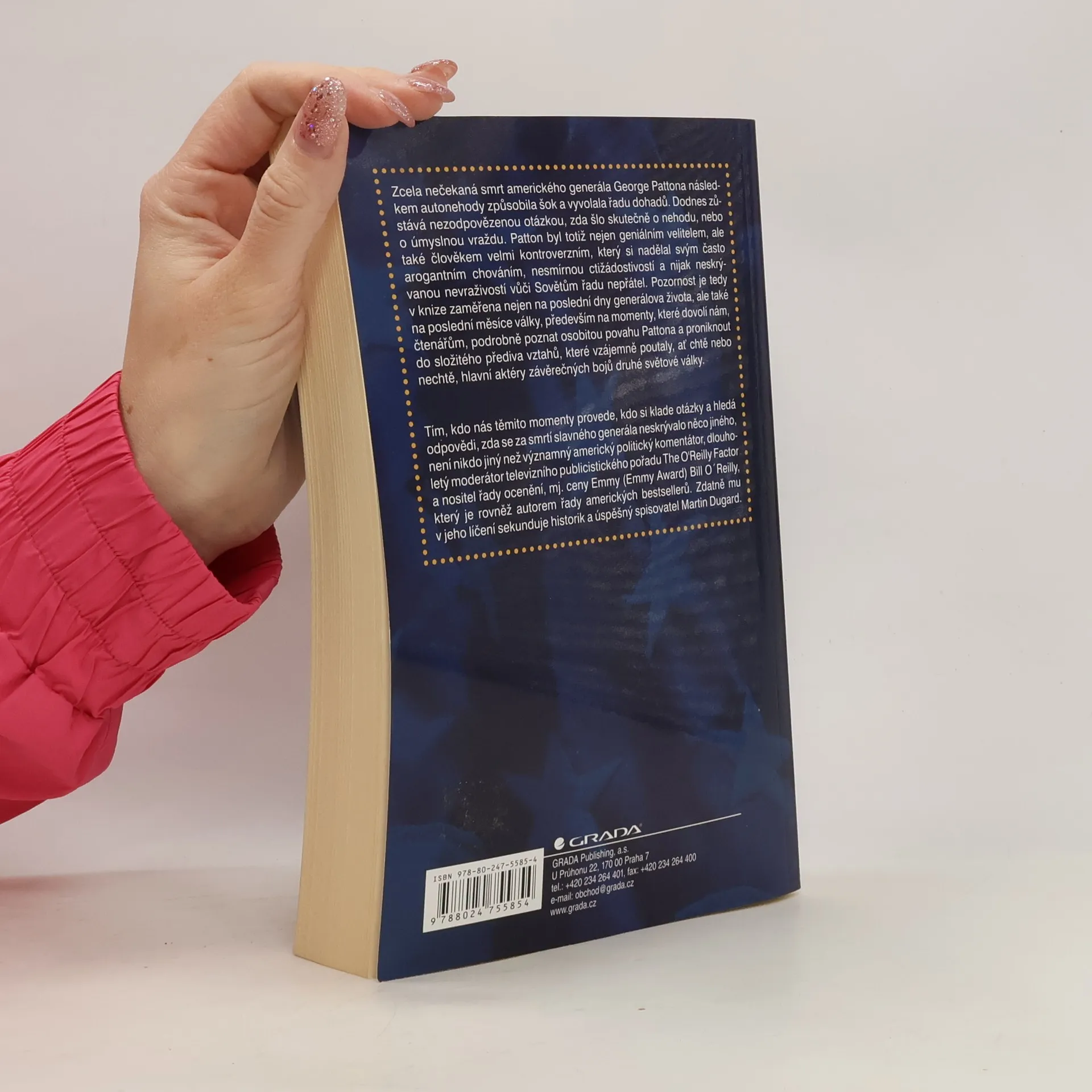 Podtitul: Nešťastná náhoda, nebo předem naplánovaná vražda? Zcela nečekaná smrt amerického generála George Pattona v důsledku autonehody způsobila šok a vyvolala řadu dohadů. Dodnes zůstává nezodpovězenou otázkou, zda šlo skutečně o nehodu, nebo o úmyslnou vraždu. Patton byl totiž nejen geniálním velitelem, ale také člověkem velmi kontroverzním, který si nadělal svým často neomaleným agresivním chováním, velkou ctižádostivostí a nijak neskrývanou nevraživostí vůči Sovětům řadu nepřátel. Pozornost je tedy v knize zaměřena nejen na poslední dny generálova života, ale také na poslední měsíce války, především na momenty, které dovolí nám, čtenářům, podrobně poznat osobitou povahu Pattona a proniknout do složitého přediva vztahů, které poutaly, ať chtě nebo nechtě, hlavní aktéry závěrečných bojů druhé světové války. Tím, kdo nás těmito momenty provede, kdo si klade otázky a hledá odpovědi, zda se za smrtí slavného generála neskrývalo něco jiného, není nikdo jiný než významný americký politický komentátor, dlouholetý moderátor televizního publicistického pořadu The O'Reilly Factor. Kniha byla přeložena z originálu „Killing Patton. The Strange Death of World War lľs Most Audacious General“ vydaného nakladatelstvím Henry Holt and Company v New Yorku v roce 2014. První vydání.