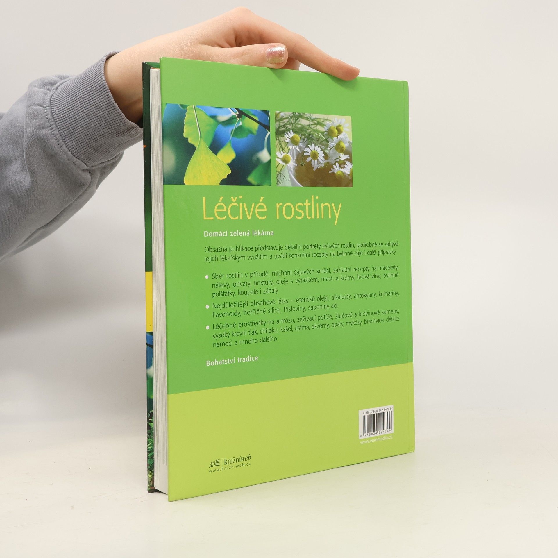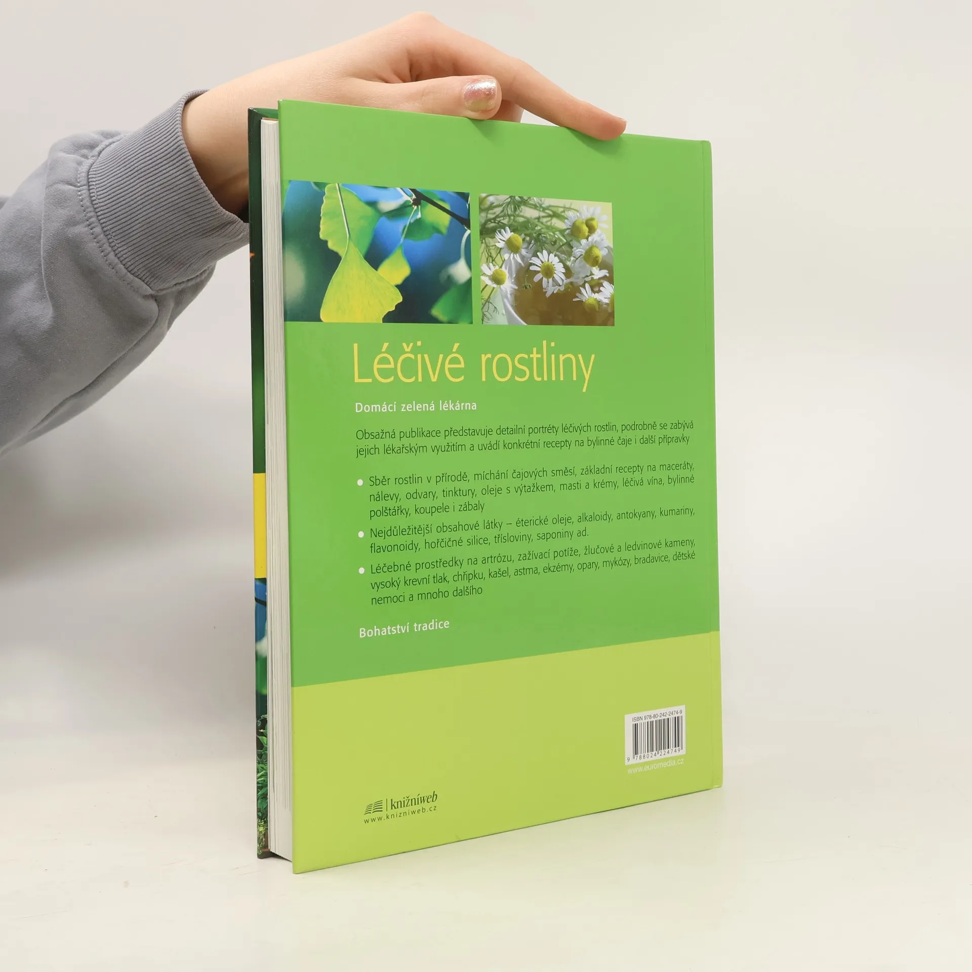 Obsažná publikace představuje detailní portréty léčivých rostlin, podrobně se zabývá jejich lékařským využitím, vyjmenovává nejdůležitější obsahové látky (éterické oleje, alkaloidy, kumariny, flavonoidy, třísloviny ad.), popisuje základní recepty na maceráty, nálevy, odvary, tinktury, oleje s výtažkem, masti a krémy, léčivá vína, bylinné polštářky, koupele i zábaly a uvádí léčebné prostředky na jednotlivé nemoci (artrózu, zažívací potíže, žlučové a ledvinové kameny, vysoký krevní tlak, chřipku, kašel, astma, ekzémy, opary, mykózy, bradavice, dětské nemoci a mnoho dalších).
