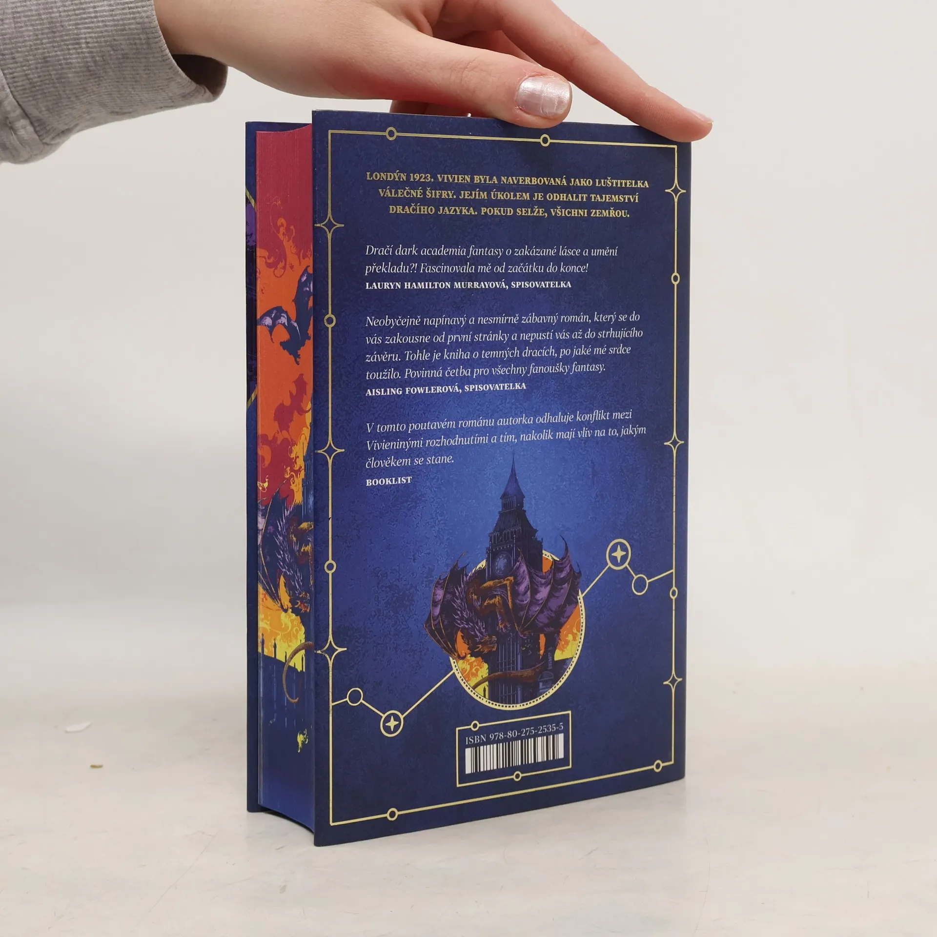 Vítejte v londýnském Bletchley Parku v roce 1923… ovšem tentokrát s draky! V ulicích Londýna propuknou protesty, ale Vivien si s tím příliš hlavu neláme. Hodlá dodržovat pravidla, získat stáž při studiu dračích jazyků a hlavně zajistit, aby její mladší sestra vyrůstala v těch nejlepších podmínkách. Všechno jde podle plánu, dokud ovšem Viv omylem nerozpoutá občanskou válku. Její rodiče jsou zatčeni a sestra se ztratí neznámo kde. Všechno, o co Viv usilovala, se během jediné noci zhroutí. Když se jí naskytne příležitost přijmout riskantní práci, která by mohla všechny její problémy vyřešit, neváhá. Po příjezdu do Bletchley Parku zjistí, že byla naverbovaná jako luštitelka válečných šifer. Pokud uspěje, může se ona i její rodina vrátit domů. Pokud ne, všichni zemřou. Zpočátku Viv věří, že její úkol — odhalit tajemství dračího jazyka — je splnitelný. Čím více informací však získává, tím intenzivněji si uvědomuje, že bublina, ve které vyrostla, není tak bezpečná, jak si doposud myslela.