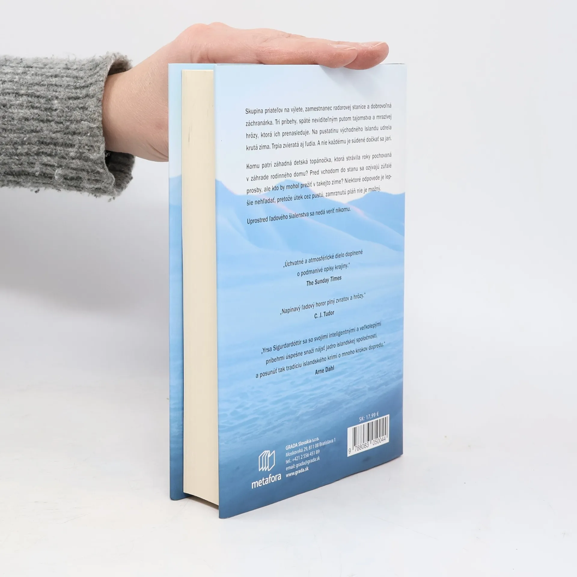 Neľútostná severská zima neušetrí nikoho. Útek nie je možný, no nebezpečenstvo nečíha len vonku. Ďalší mrazivý román od úspešnej Yrsy Sigurdardóttir sľubuje tajomstvo, hrôzu a neľútostnú silu prírody. Skupina priateľov na výlete, zamestnanec radarovej stanice a dobrovoľná záchranárka. Tri príbehy, späté neviditeľným putom tajomstva a mrazivej hrôzy, ktorá ich prenasleduje. Na pustatinu východného Islandu udrela krutá zima. Trpia zvieratá aj ľudia. A nie každému je súdené dočkať sa jari. Komu patrí záhadná detská topánočka, ktorá strávila roky pochovaná v záhrade rodinného domu? Pred vchodom do stanu sa ozývajú zúfalé prosby, ale kto by mohol prežiť v takejto zime? Niektoré odpovede je lepšie nehľadať, pretože útek cez pustú, zamrznutú pláň nie je možný. Uprostred ľadového šialenstva sa nedá veriť nikomu.