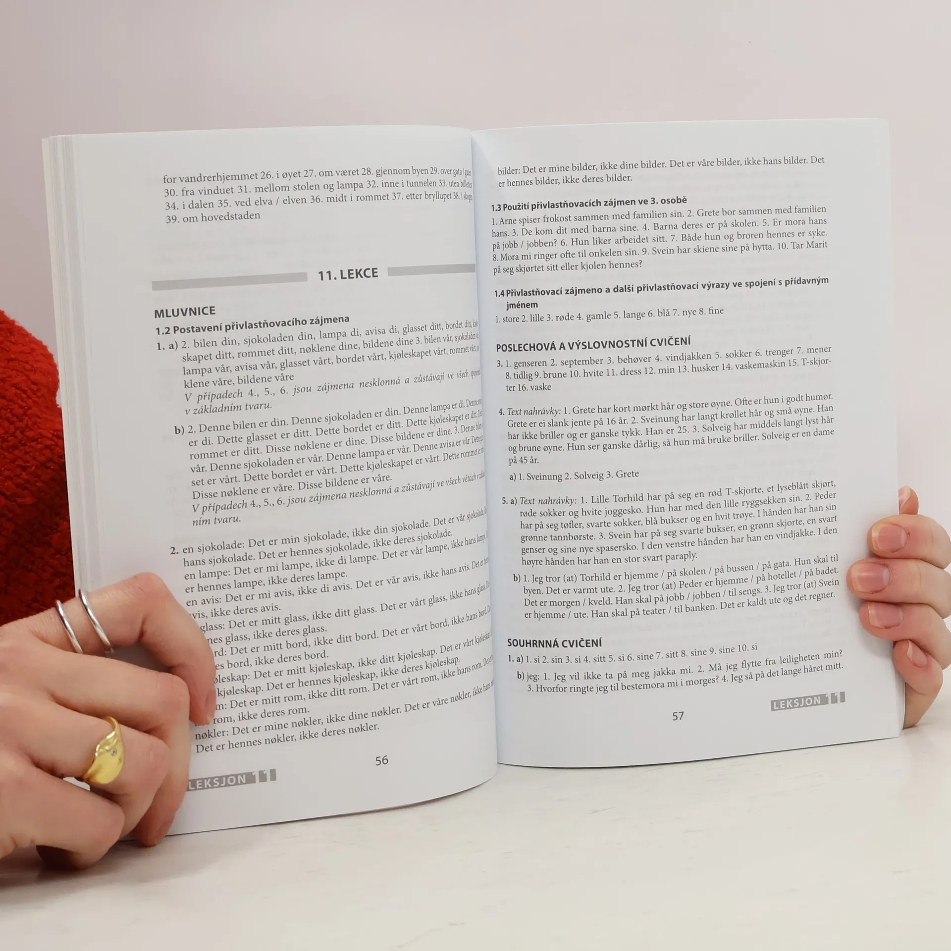 Základní učebnice norštiny je určena všem, kteří se chtějí naučit norsky (bokmal) především samostudiem, dobře ale poslouží i pro jazykové kurzy. V jednotlivých lekcích je zařazen úvodní článek (nebo články), dále dialogy, základní slovíčka pro danou lekci, rozšiřující slovní zásoba, oddíl frází a předložkových vazeb, informace týkající se norských reálií, oddíl s mluvnickým výkladem, cvičení na výslovnost, poslechová cvičení a velké množství cvičení na mluvnické jevy a slovní zásobu. Úvodní texty jednotlivých lekcí obsahují jak užitečné fráze nutné pro dorozumění v běžných situacích, tak zajímavé reálie týkající se Norska a života lidí v této zemi.
