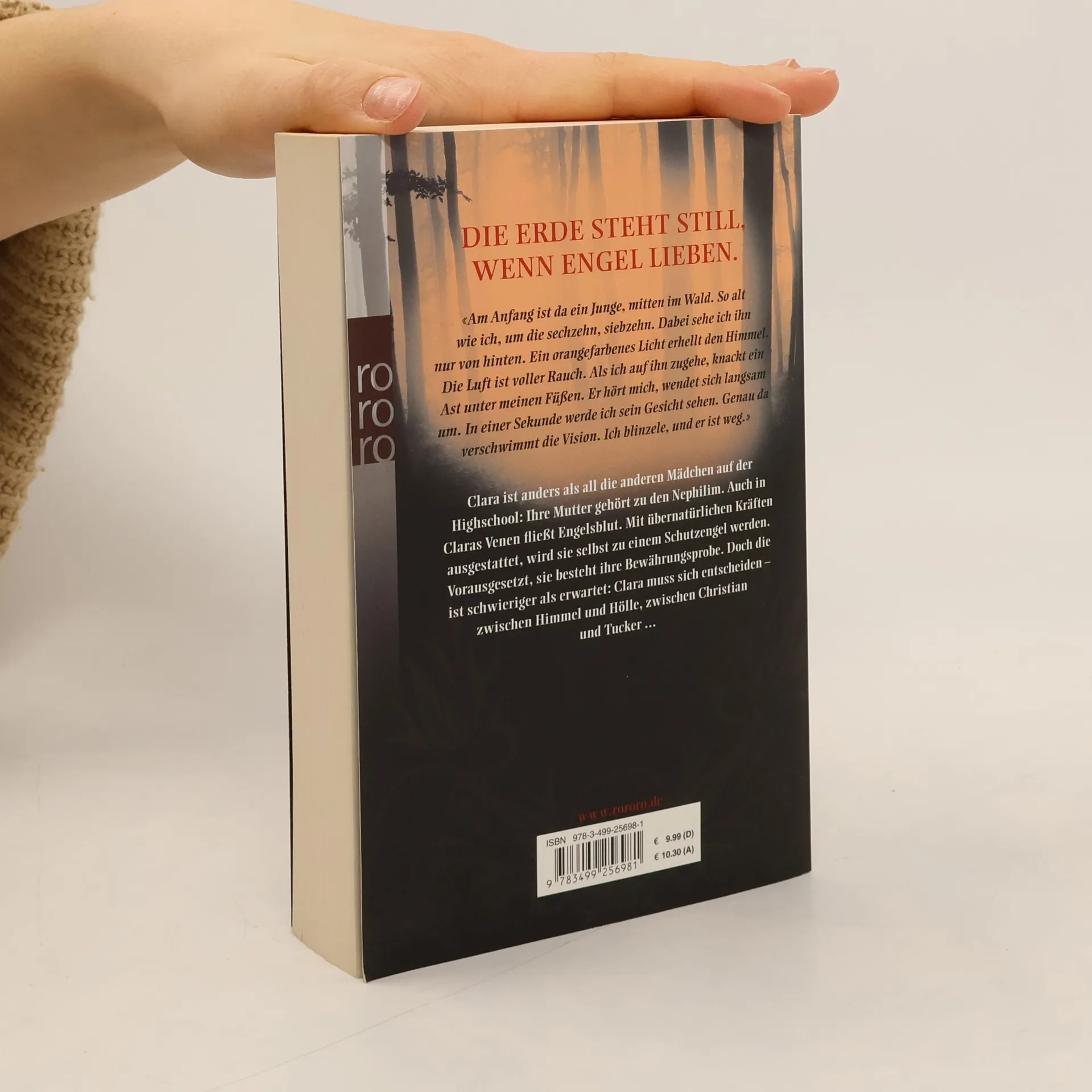 Die Erde steht still, wenn Engel lieben. «Am Anfang ist da ein Junge, mitten im Wald. So alt wie ich, um die sechzehn, siebzehn. Dabei sehe ich ihn nur von hinten. Ein orangefarbenes Licht erhellt den Himmel. Die Luft ist voller Rauch. Als ich auf ihn zugehe, knackt ein Ast unter meinen Füßen. Er hört mich, wendet sich langsam um. In einer Sekunde werde ich sein Gesicht sehen. Genau da verschwimmt die Vision. Ich blinzle, und er ist weg.»Clara ist anders als all die anderen Mädchen auf der Highschool: Ihre Mutter gehört zu den Nephilim. Auch in Claras Venen fließt Engelsblut. Mit übernatürlichen Kräften ausgestattet, wird sie selbst zu einem Schutzengel werden. Vorausgesetzt, sie besteht ihre Bewährungsprobe. Doch die ist schwieriger als erwartet: Clara muss sich entscheiden – zwischen Himmel und Hölle, zwischen Christian und Tucker ...