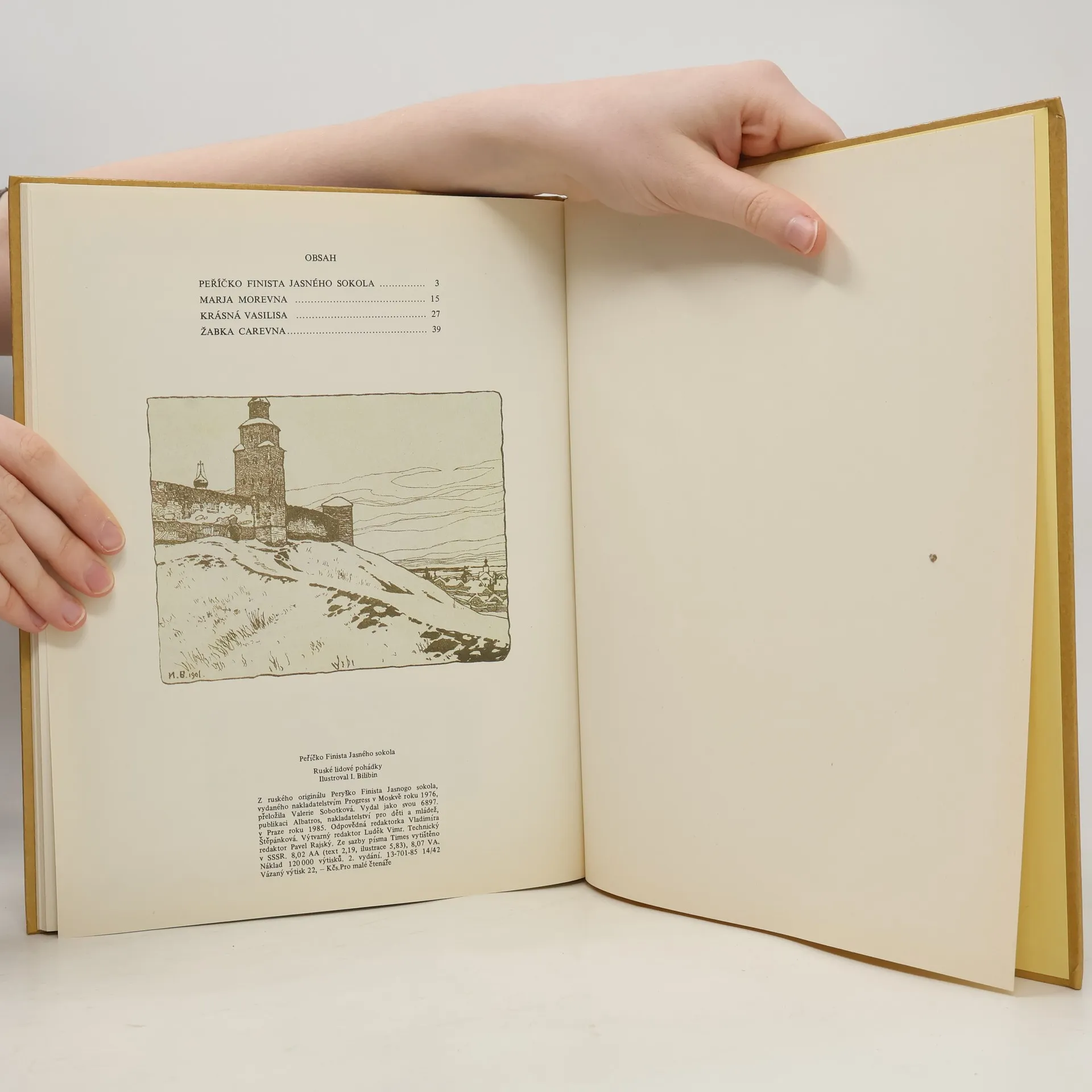 Soubor čtyř klasických ruských pohádek - Peříčko Finista Jasného sokola, Marja Morevna, Krásná Vasilisa, Žabka carevna - ve výpravném bohatě ilustrovaném vydání.
