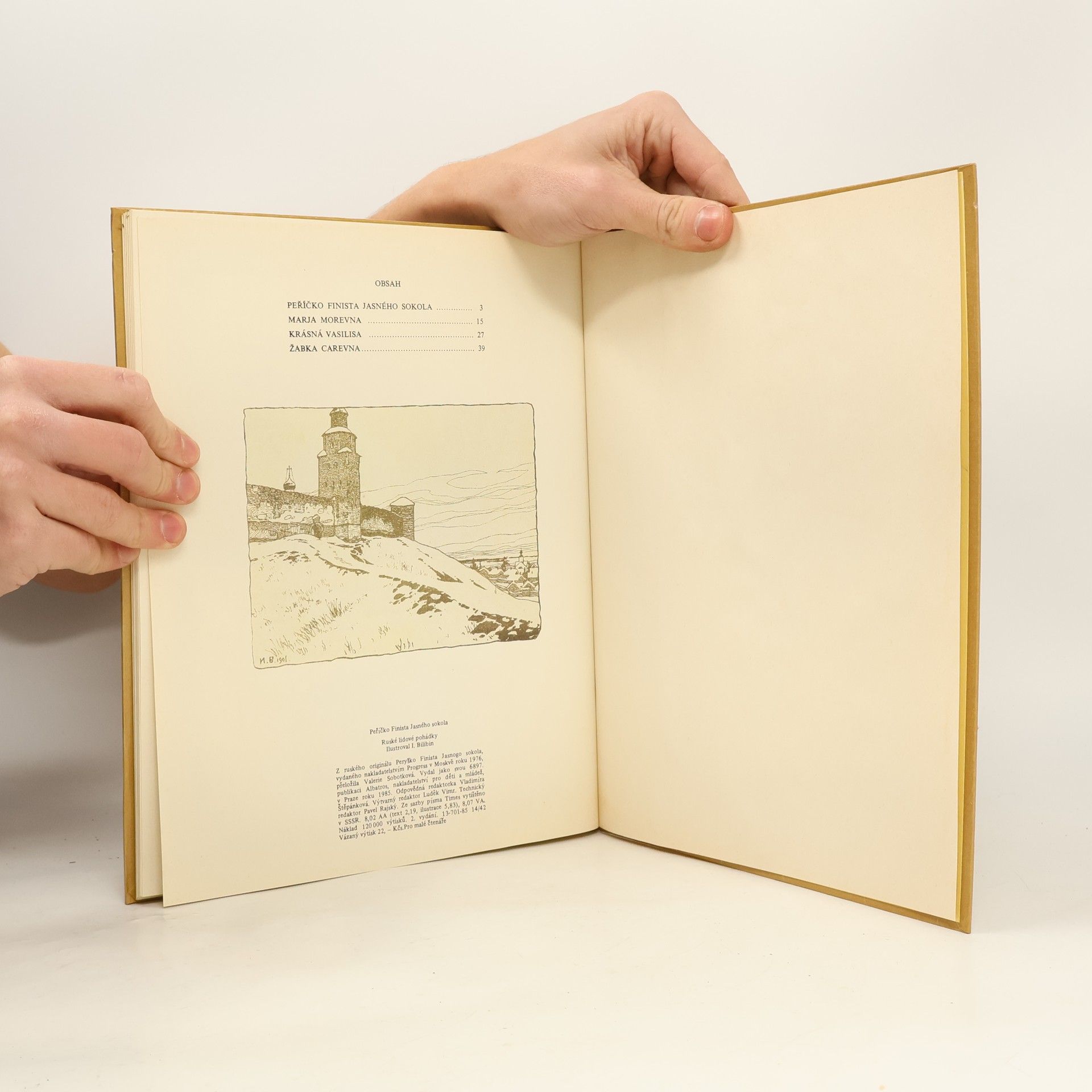 Soubor čtyř klasických ruských pohádek - Peříčko Finista Jasného sokola, Marja Morevna, Krásná Vasilisa, Žabka carevna - ve výpravném bohatě ilustrovaném vydání.