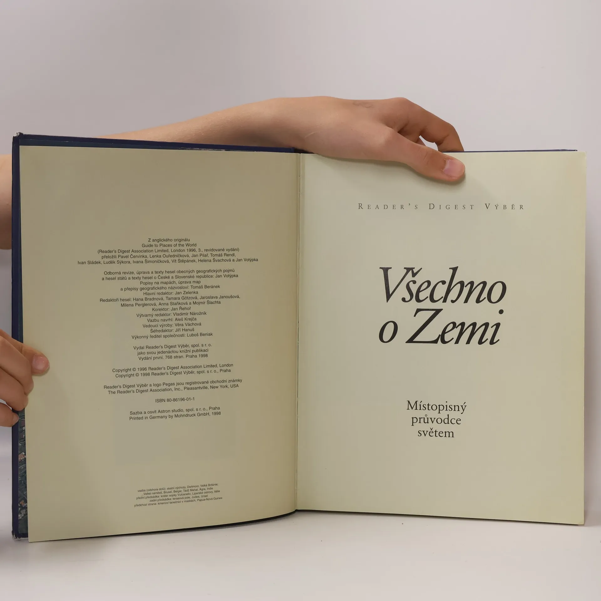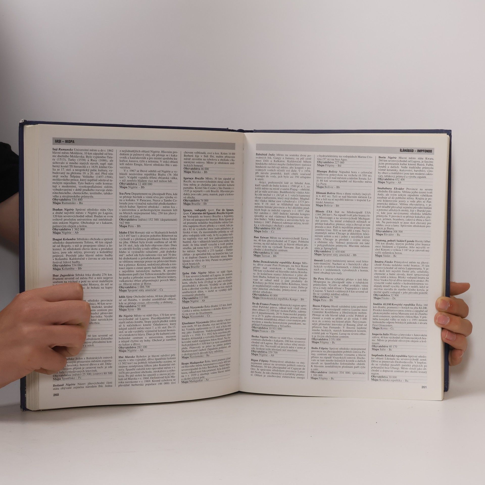 Dočtete se v ní o více než 6 500 pamětihodností naší planety, a to jak přírodních, tak vytvořených člověkem. Získáte správné povědomí o tom, kde leží místa, o kterých se hovoří v denních zprávách, kde se nacházejí oblasti, které přitahují mimořádný zájem turistů, kraje, které často postihují přírodní neštěstí, nebo významná naleziště přírodních zdrojů. Najdete zde například odpověď na otázky: Jak žijí lidé v různých částech světa a jaká je jejich kultura a tradice? Jaký mají ekonomický potenciál jednotlivé země a jejich hlavní města a jací jsou lidé, kteří v nich žijí? Která jsou nejméně probádaná místa na Zemi? Proč a jak vznikají orkány? Kde se nacházejí nejvyšší a nejširší vodopády? Jak vznikly neuvěřitelné památky z dob dávných civilizací? Knížka obsahuje 7 500 hesel, popis 193 zemí, více než 250 barevných vyobrazení a 174 barevných map.... celý text