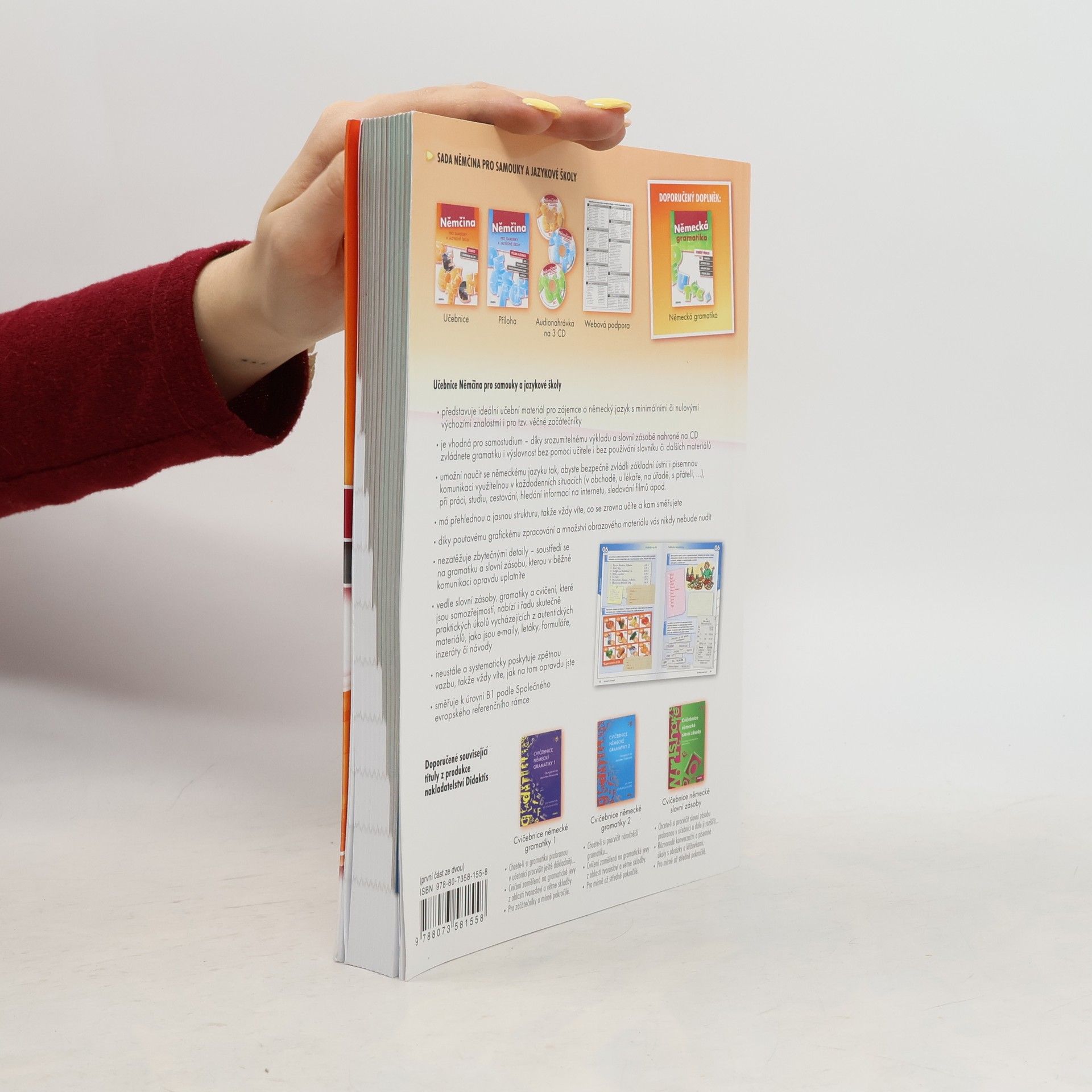 Přehledná a graficky poutavá učebnice vhodná pro zájemce o němčinu s nulovými či minimálními výchozími znalostmi i pro věčné začátečníky obsahuje texty a slovní zásobu z řady praktických oblastí (práce, bydlení, cestování, kultura, nemoc), cvičení zaměřená na gramatiku a využitelná v praxi..