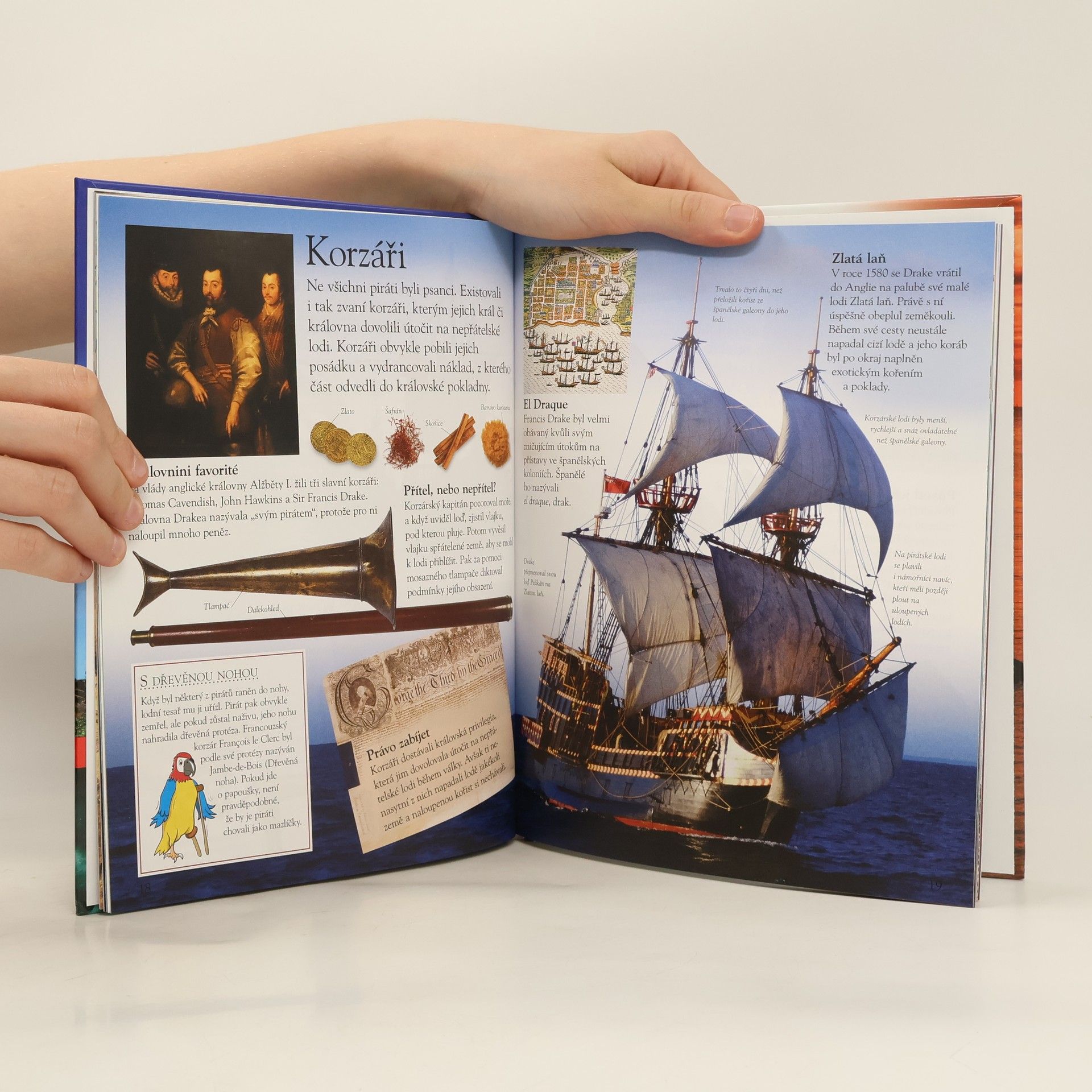 Všichni na palubu! Vytáhni pirátskou vlajku na stožár a vypluj s námi na dobrodružnou výpravu za piráty a bukanýry. Zjisti, kdo byli piráti, jak jejich řemeslo vzniklo a jakými pravidly se řídili. Vydej se do zrádných vod Karibiku a obdivuj pohádkový třpyt pokladů. Seznam se s nejslavnějšími piráty historie a poznej, co symbolizovala lebka se kříženými hnáty. Otestuj své vědomosti v báječných hrách a kvízech a užij si super zábavu.