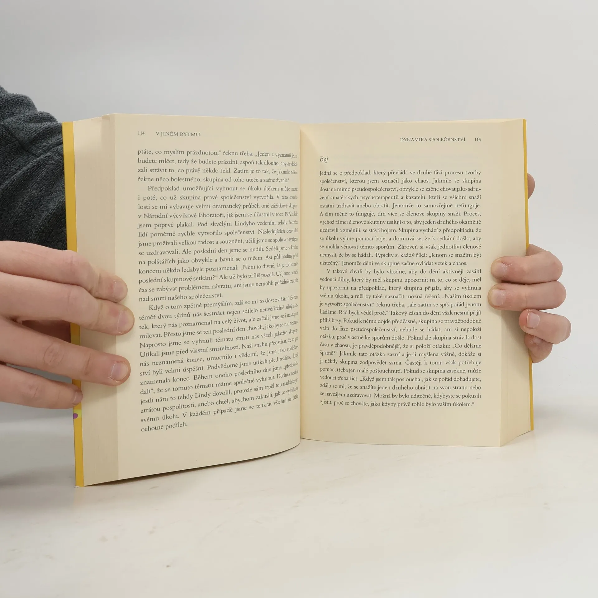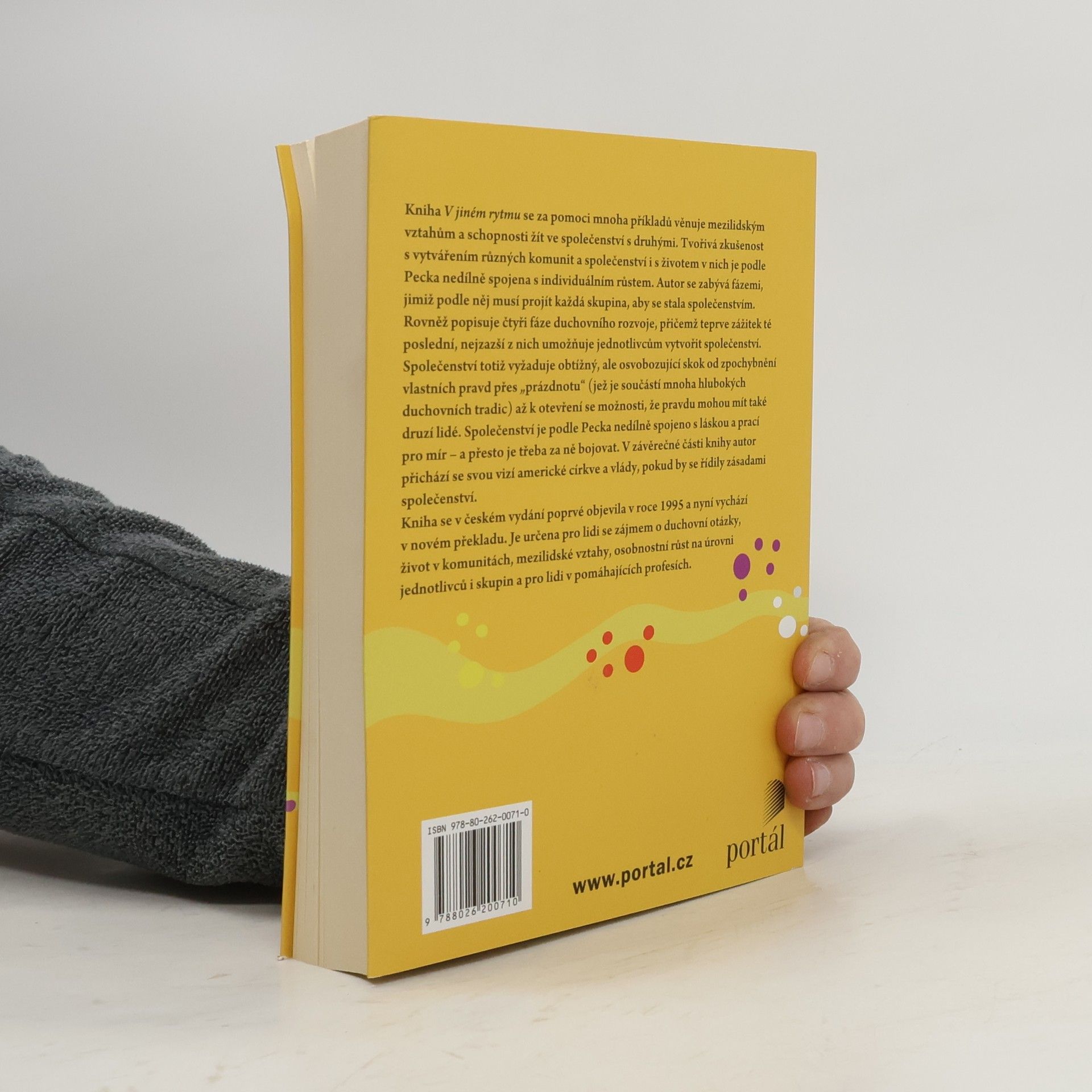 Kniha se zaměřuje na mezilidské vztahy a schopnost žít ve společenství. Autor, M. Scott Peck, pomocí konkrétních a často vtipných příkladů zkoumá, jak je tvořivá zkušenost vytváření různých komunit spojena s individuálním růstem. Popisuje fáze, kterými musí každá skupina projít, aby se stala společenstvím, a zároveň se věnuje duchovnímu rozvoji, přičemž dosažení nejvyšší fáze umožňuje jednotlivcům vytvářet společenství. To vyžaduje obtížný, ale osvobozující skok od zpochybnění vlastních pravd přes „prázdnotu“, která je součástí mnoha duchovních tradic, až k otevřenosti vůči pravdám druhých, což prohlubuje vlastní náhled. Kniha, poprvé vydaná v češtině v roce 1995, nyní vychází v novém překladu a je určena lidem se zájmem o duchovní otázky, život v komunitách, mezilidské vztahy a osobnostní růst. Peck, americký psychoterapeut, je autorem esejistických knih, které se staly klasikou duchovní a populárně psychologické literatury. V češtině vyšlo několik jeho titulů, včetně Nevyšlapanou cestou a Dále nevyšlapanou cestou.