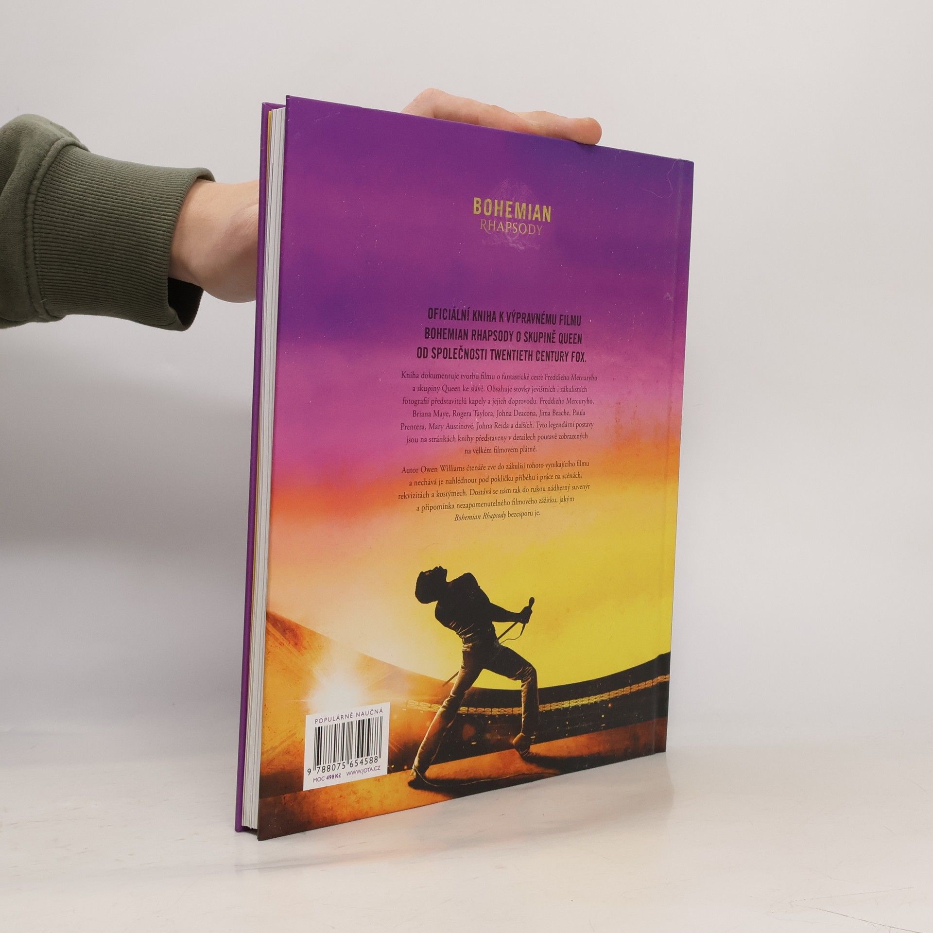 Ze zákulisí filmového megahitu. Oficiální kniha k výpravnému filmu Bohemian Rhapsody o skupině Queen od společnosti Twentieth Century Fox. Kniha dokumentuje fantastickou cestu Freddieho Mercuryho a skupiny Queen, jak byli zachyceni ve filmu. Obsahuje stovky jevištních i zákulisních fotografií členů kapely a jejich doprovodu: Freddieho Mercuryho, Briana Maye, Rogera Taylora, Johna Deacona, Jima Beache, Paula Prentera, Mary Austinové, Johna Reida a dalších. Tyto legendární postavy jsou na stránkách knihy představeny s detailností velkého filmového plátna. Autor Owen Williams nás zavádí do centra dění, v němž se natáčel tento vynikající film a nechává nás nahlédnout pod pokličku příběhu i práce na scénách, rekvizitách a kostýmech. Čtenáři se tak dostává do rukou nádherný suvenýr a připomínka nezapomenutelného filmového zážitku, jakým je Bohemian Rhapsody.