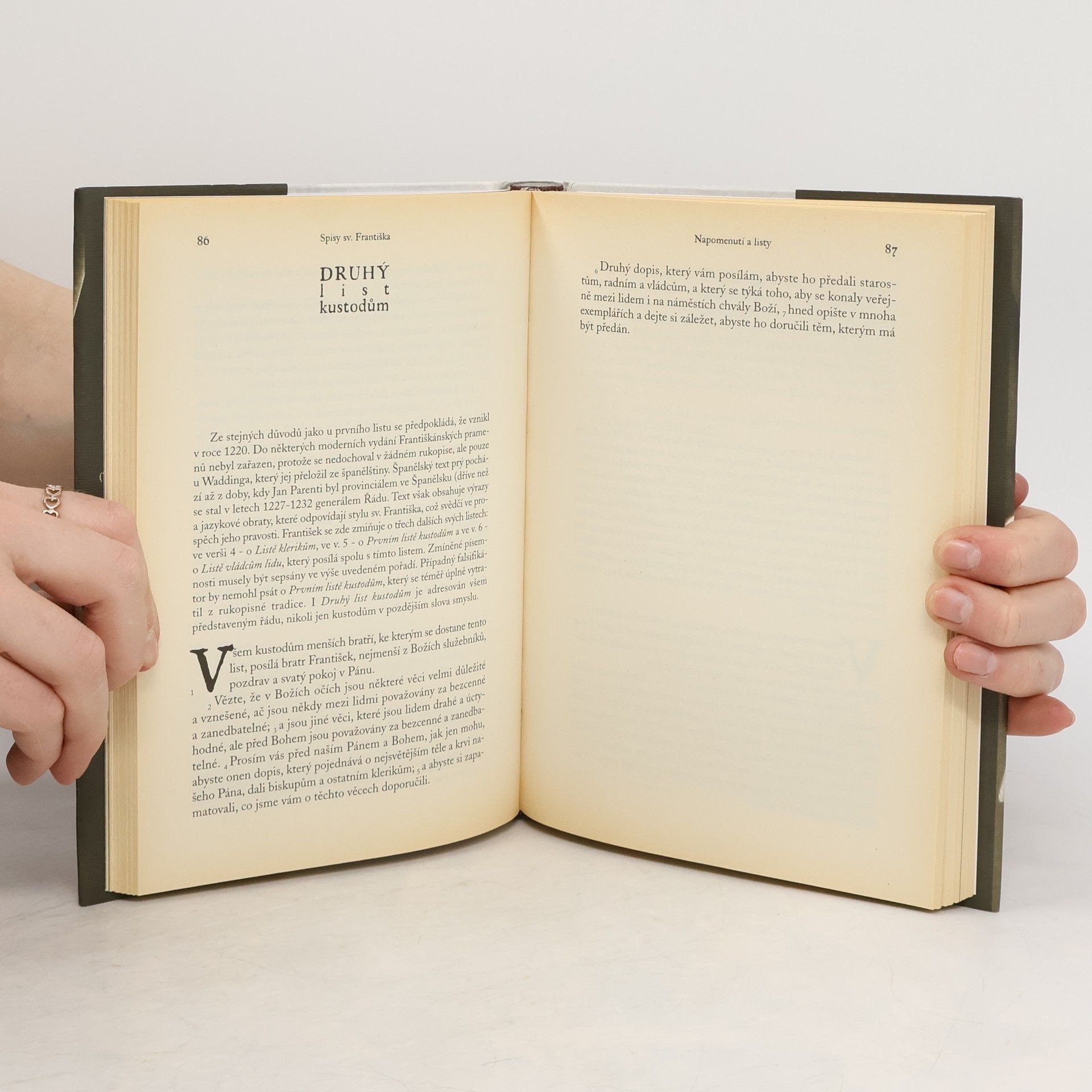 1. díl Františkánských pramenů přináší první český překlad z latinského kritického vydání „Fontes franciscani“ všech písemností, snad největšího světce 13. století, sv. Františka z Assisi. Redigoval, poznámkami a úvody opatřil Jiří Bonaventura Štivar.