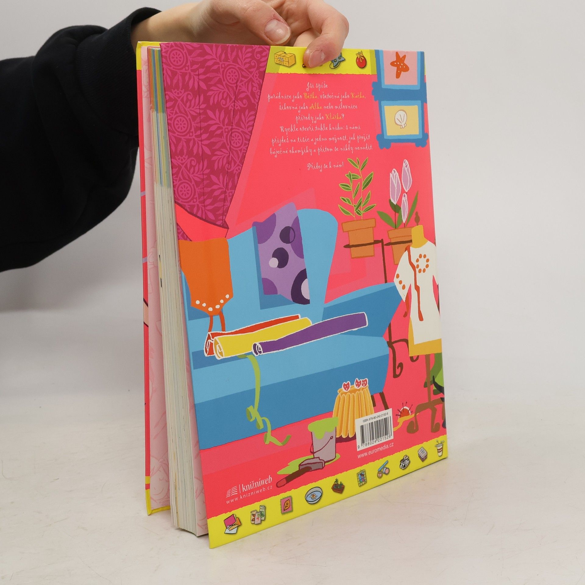 Prima spolek dnešních holek, parádnice Bětka, všetečka Kačka, šikulka Alka a zahradnice Klárka, vám ukáže spoustu báječných věcí, které se dají dělat ve volném čase - ať už to je móda, šperky, oslavy, vaření, kreslení, kutění, sport, pokusy nebo zahradničení. Je libo parfém? Krásné sponky podomácku! Vylepšete si trička! Ze starých džínů nové doplňky! Vlastní šperkovnice! Čokoládový šok! Uspořádejte si slet čarodějnic! A to ještě zdaleka nejsou všechny nápady, které v téhle knížce najdete!