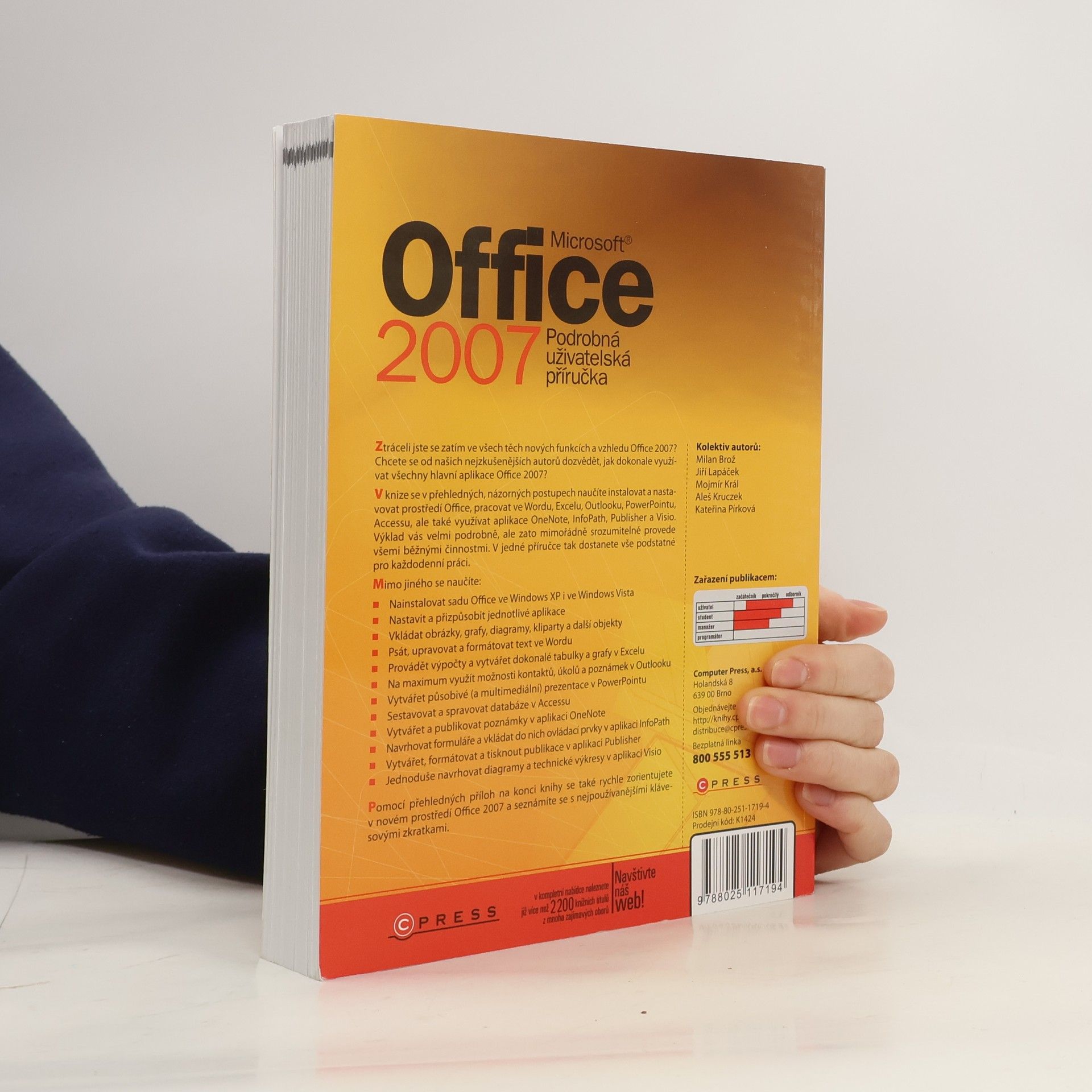 Chcete ovládnout všechny hlavní programy balíku Microsoft Office 2007 na uživatelské úrovni? Naučíte se Office nainstalovat či nastavit a pracovat ve Wordu, Excelu, Outlooku, PowerPointu, Accessu, ale také využívat aplikace OneNote, InfoPath, Publisher a Visio. Výklad vás provede všemi běžnými činnostmi podrobně, ale mimořádně srozumitelně. V jedné příručce tak dostanete vše podstatné pro každodenní práci.