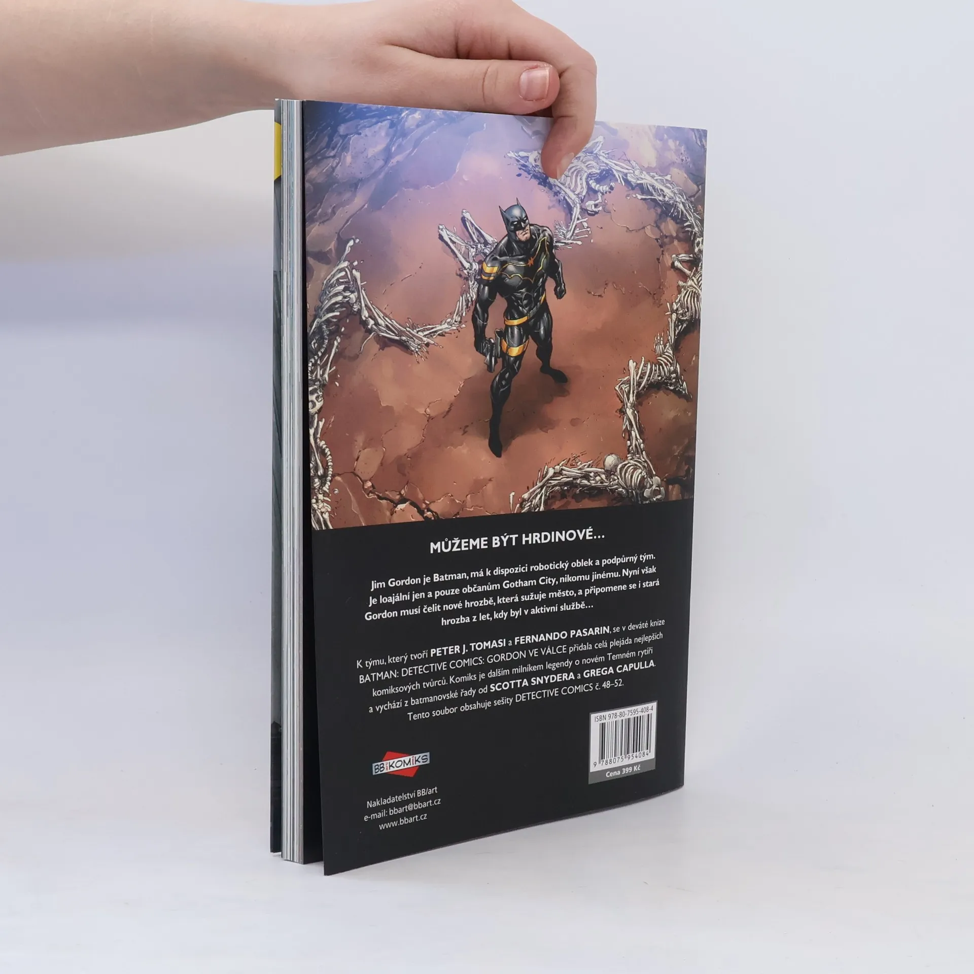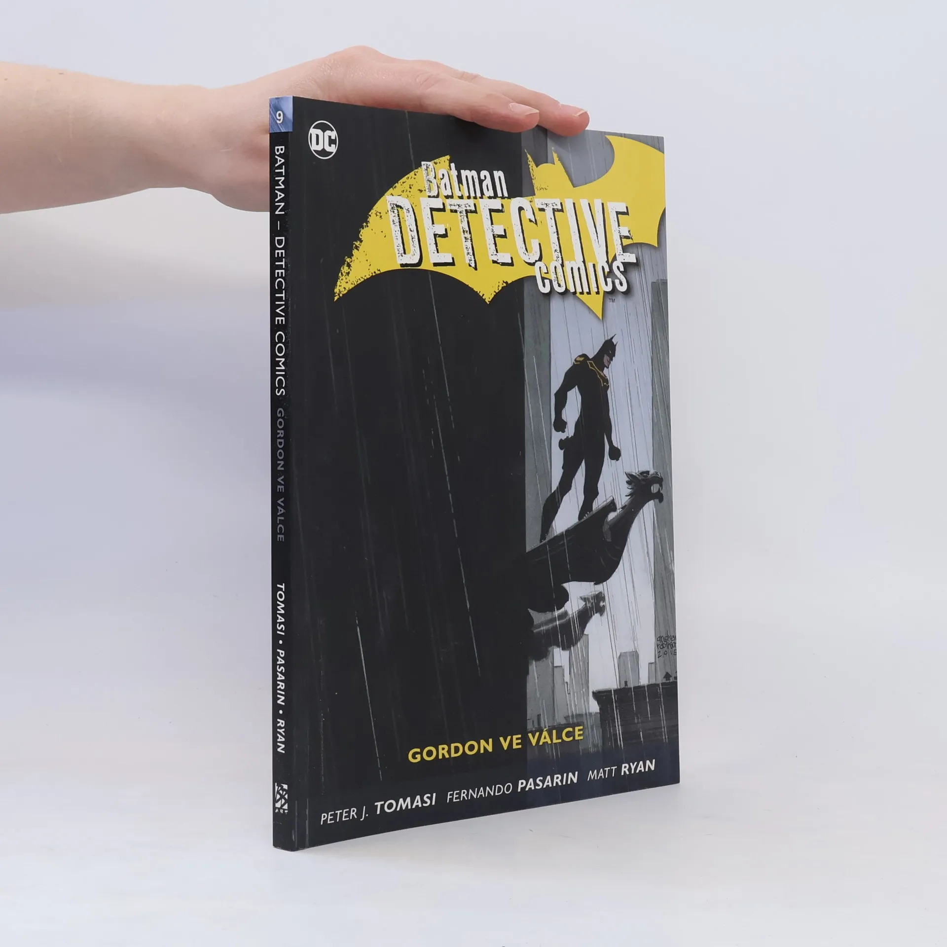 Býval to nejlepší gothamský policajt. Teď je z něj Temný rytíř. Jima Gordona nikdy nenapadlo, že se ocitne v kůži svého někdejšího spojence i protivníka a že převezme roli Batmana. Nyní, když je sám tváří pod maskou, zjišťuje, že riziko, které to obnáší, je mnohem větší, než si kdy myslel. Větší bude ale i odměna. Nyní se Gordon nemusí řídit předpisy a nařízeními platnými pro Gothamskou policii, a má tak sílu dořešit své staré případy, pomoct svým starým kamarádům a zaútočit přímo na nepřítele. Ale minulost se umí ozvat, a i když teď Jim zaujímá v boji proti zločinu jinou roli, duchové starých časů se hlásí o slovo. Mučedníci a magoři, mariňáci a magie, mordy a mely – pokud chce být Gordon strážcem Gothamu, musí se s nimi se všemi vypořádat… K týmu, který tvoří PETER J. TOMASI a FERNANDO PASARIN, se v deváté knize BATMAN: DETECTIVE COMICS: GORDON VE VÁLCE přidala celá plejáda nejlepších komiksových tvůrců. Komiks je dalším milníkem legendy o novém Temném rytíři a vychází z batmanovské řady od SCOTTA SNYDERA a GREGA CAPULLA. Tento soubor obsahuje sešity DETECTIVE COMICS č. 48–52.