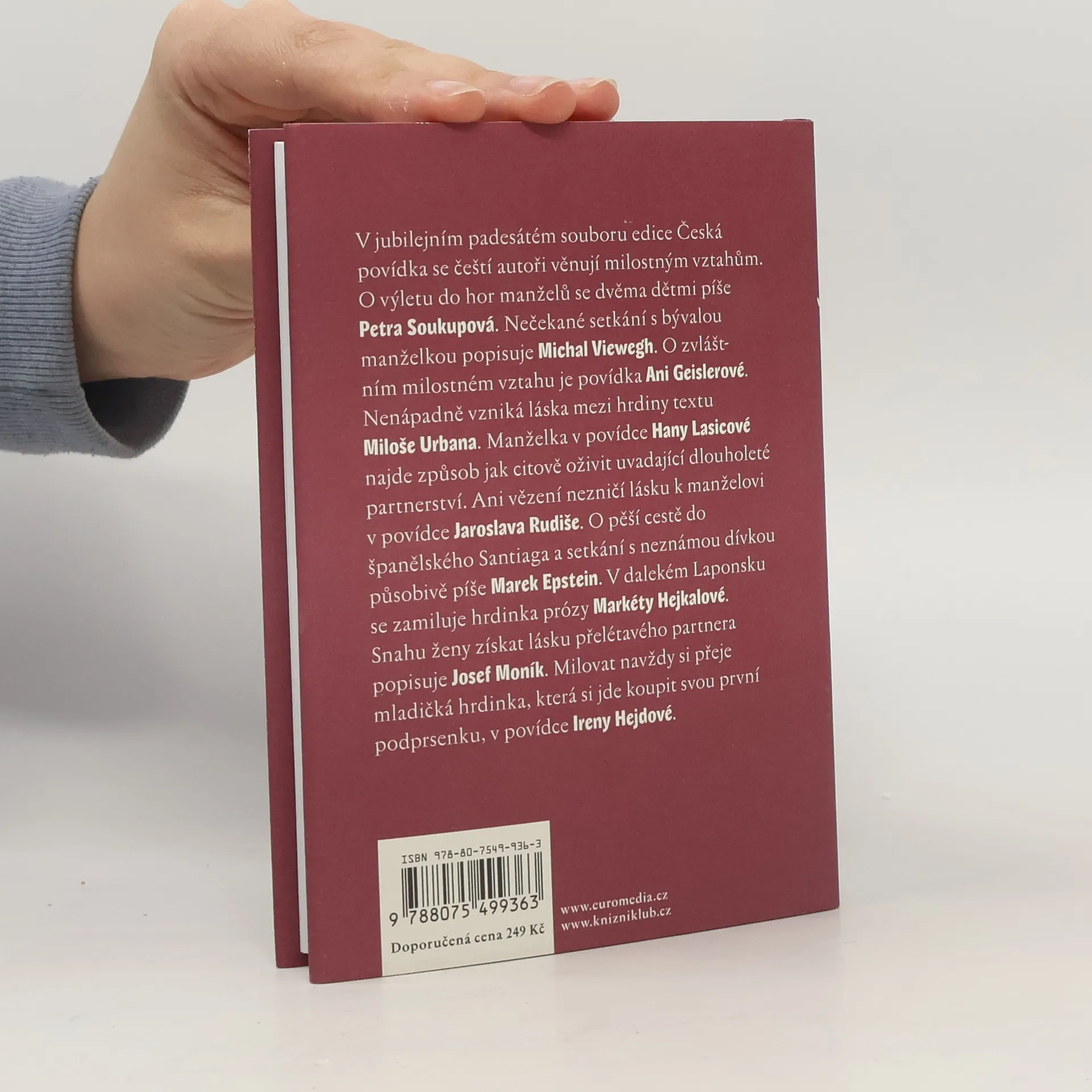 V jubilejním padesátém souboru edice Česká povídka se čeští autoři věnují milostným vztahům. O výletu do hor manželů se dvěma dětmi píše Petra Soukupová. Nečekané setkání s bývalou manželkou popisuje Michal Viewegh. O zvláštním milostném vztahu je povídka Ani Geislerové. Nenápadně vzniká láska mezi hrdiny textu Miloše Urbana. Manželka v povídce Hany Lasicové najde způsob jak citově oživit uvadající dlouholeté partnerství. Ani vězení nezničí lásku k manželovi v povídce Jaroslava Rudiše. O pěší cestě do španělského Santiaga a setkání s neznámou dívkou působivě píše Marek Epstein. V dalekém Laponsku se zamiluje hrdinka prózy Markéty Hejkalové. Snahu ženy získat lásku přelétavého partnera popisuje Josef Moník. Milovat navždy si přeje mladičká hrdinka, která si jde koupit svou první podprsenku, v povídce Ireny Hejdové.