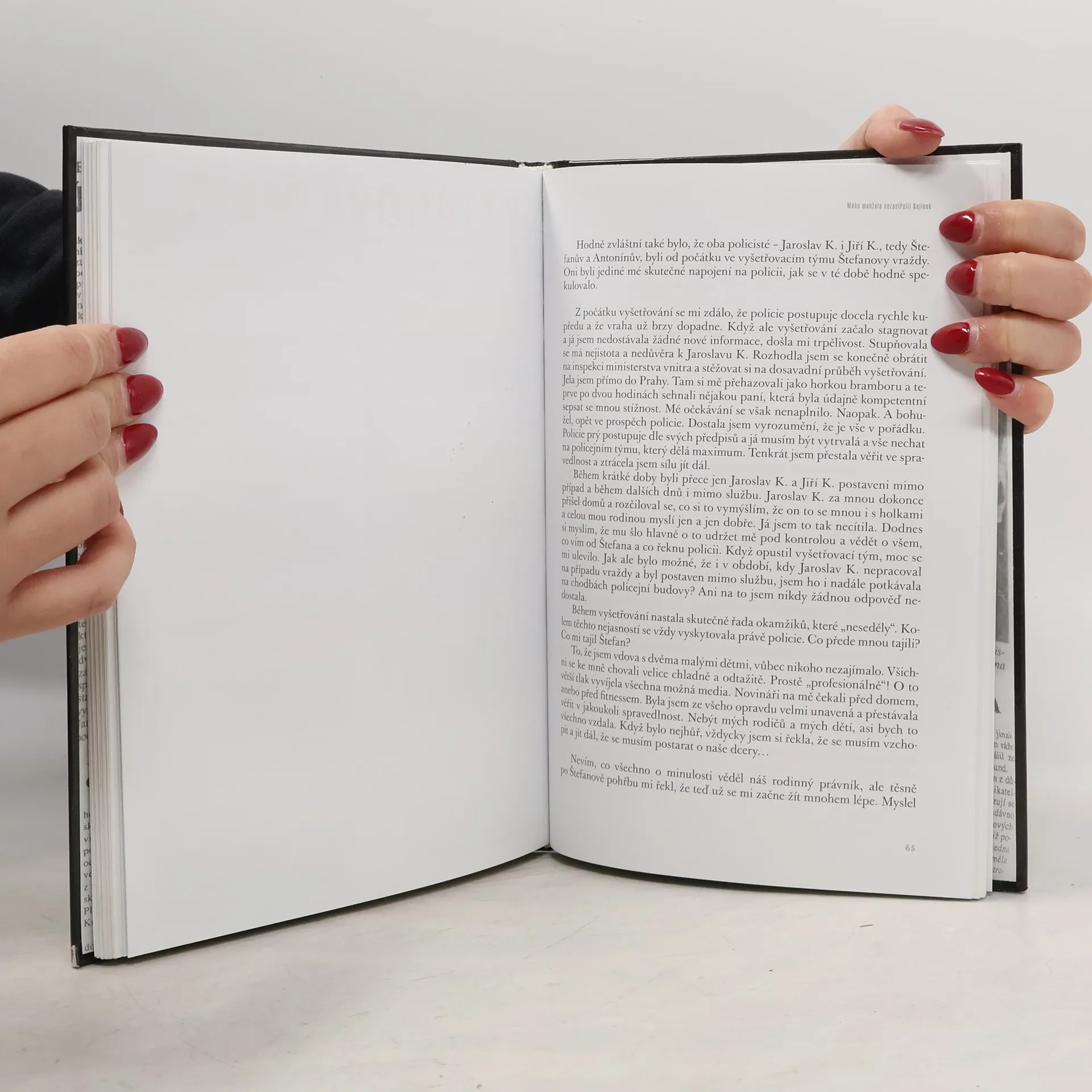 Pro mě samotnou i pro celou naši rodinu byla Štefanova smrt strašnou tragédií, která dodnes poznamenává naše životy. Byla to skutečně obrovská rána pro všechny v mém nejbližším okolí. Ti, kterých se událost osobně nedotýkala, ji považovali naopak za obrovskou senzaci. Po celá dlouhá léta ve mě uzrávala myšlenka očistit Štefanovo jméno a dovědět se pravdu. Konečně zjistit, jak to tenkrát doopravdy bylo. Jsem totiž přesvědčená, že mého muže nezabil Jiří Kajínek, který je za jeho vraždu odsouzený na doživotí! Kniha obsahuje vztahovou mapu postav, které sehrály důležitou roli buď v případu samotném, a nebo následně v životě autorky.