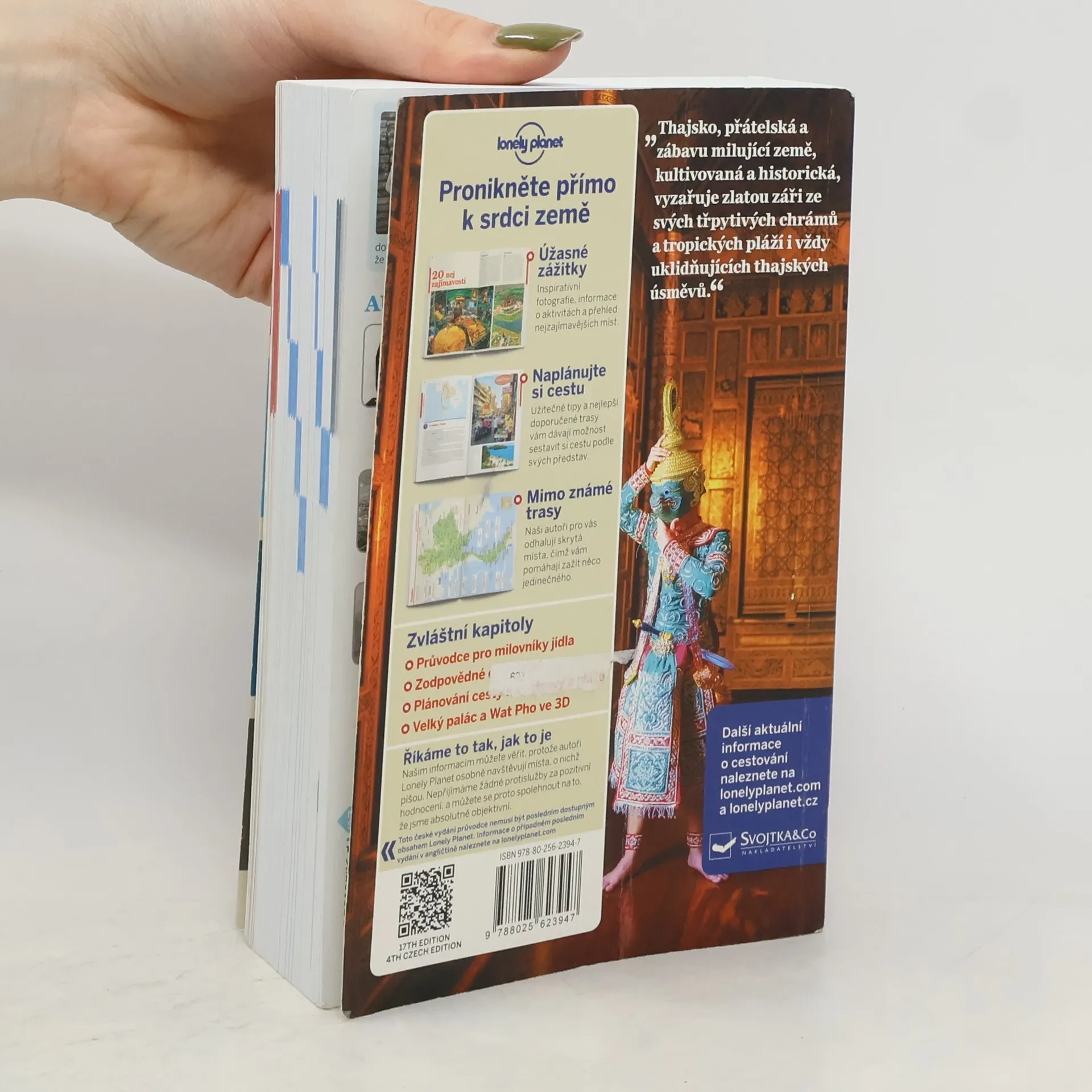 „Thajsko, přátelská a zábavu milující země, kultivovaná a historická, vyzařuje zlatou záři ze svých třpytivých chrámů a tropických pláží i vždy uklidňujících thajských úsměvů." Zvláštní kapitoly – Průvodce pro milovníky jídla – Zodpovědné cestování – Plánování cesty na ostrovy a pláže – Velký palác a Wat Pho ve 3D