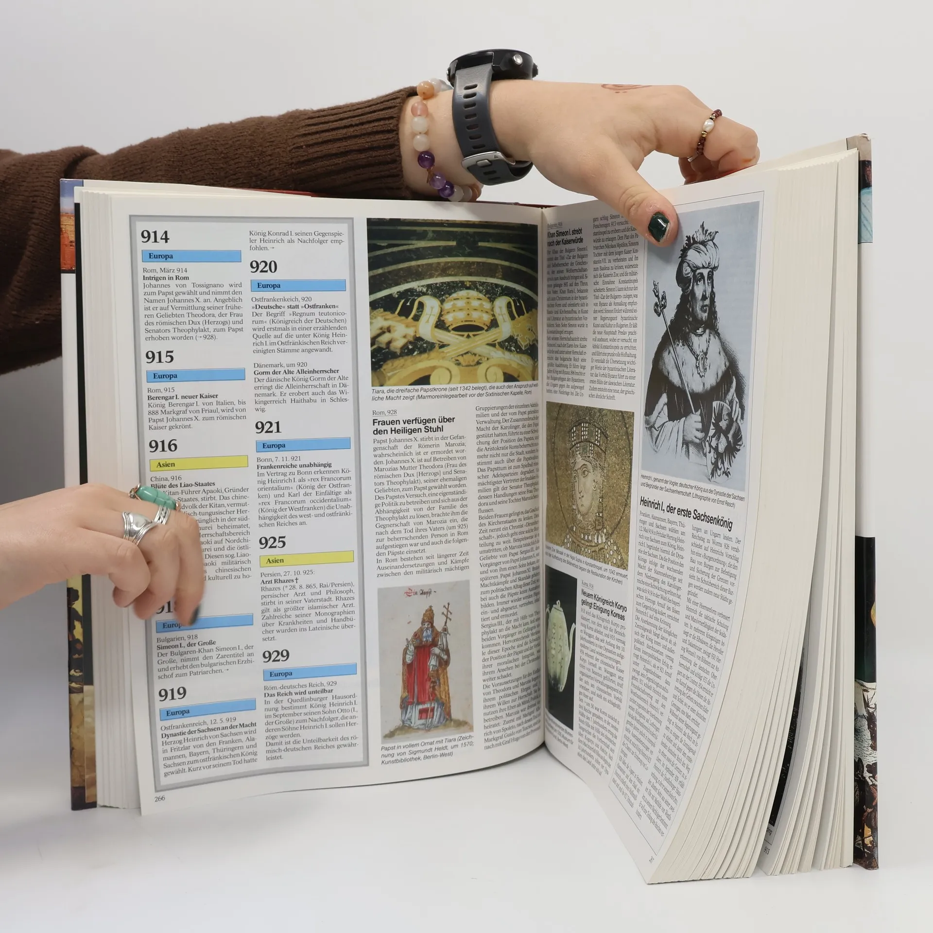 Die "Chronik der Menschheit" präsentiert sich als Weltgeschichte neuen Stils: In rund 1000 Kalenderspalten sind alle wichtigen Ereignisse vom Anbeginn bis heute chronologisch festgehalten. In rund 5000 jeweils in sich abgeschlossenen Einzelbeiträgen werden darüber hinaus Hoch- und Tiefpunkte ausführlich beschrieben. Eine Fülle von Abbildungen - mehr als 3600 Gemälde, Fotos, Karten, Schautafeln und Dokumente - kennzeichnet die Ausstattung dieses Werkes.
