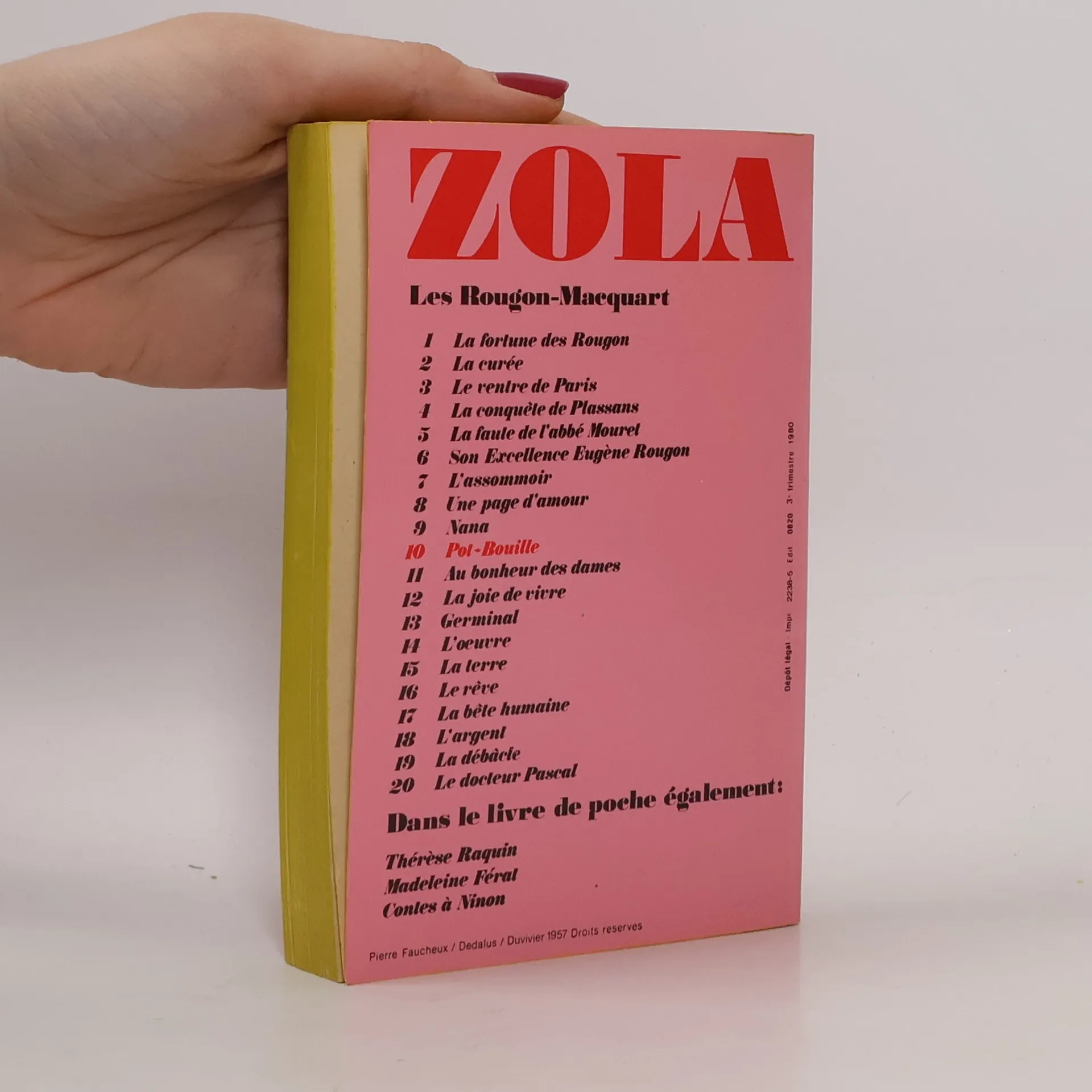 Zola est entré partout, chez les ouvriers et chez les bourgeois. Chez les premiers, selon lui, tout est visible. La misère comme le plaisir saute aux yeux. Chez les seconds tout est caché. Ils clament : " Nous sommes l'honneur, la morale, la famille ". Faux, répond Zola, vous êtes le mensonge de tout cela. Votre pot-bouille est la marmite où mijotent toutes les pourritures de la famille. Octave Mouret, le futur patron qui révolutionnera le commerce en créant Au Bonheur des Dames, arrive de province et loue une chambre dans un immeuble de la rue de Choiseul. Beau et enjoué, il séduit une femme par étage, découvrant ainsi les secrets de chaque famille. Ce dixième volume des Rougon-Macquart, retraçant la vie sous le Second Empire, c'est ici la bourgeoisie côté rue et côté cour, avec ses soucis de filles à marier, de rang à tenir ou à gagner, coûte que coûte. Les caricatures de Zola sont cruelles mais elles sont vraies.